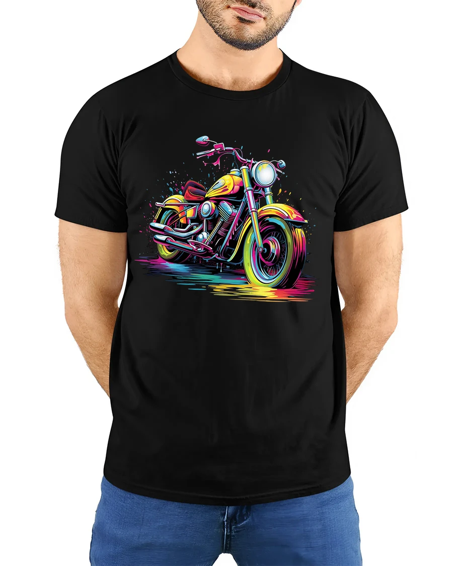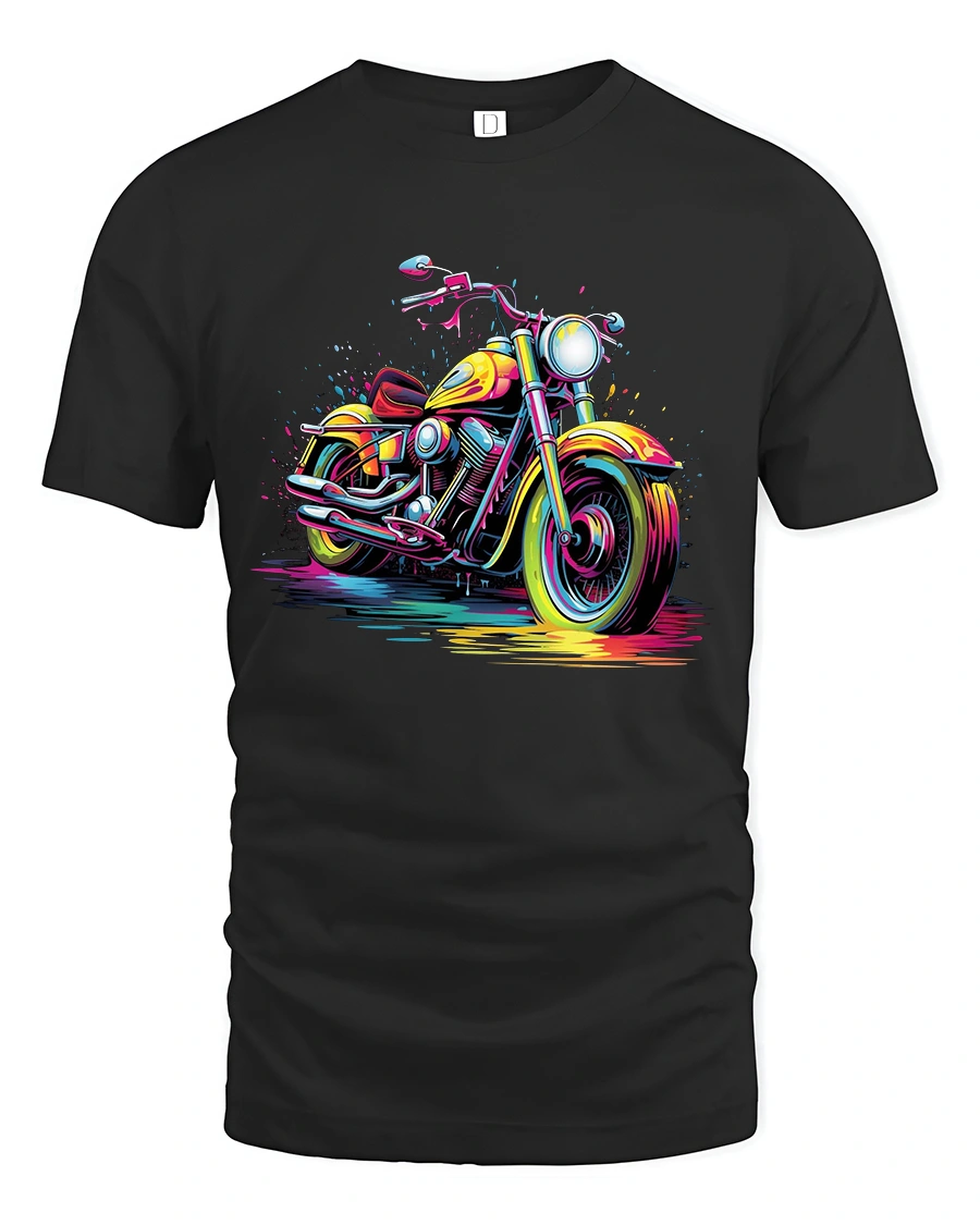 The Colorful Motorcycle Splash Art Graphic T Shirt Street Rider Style captures motion energy and bold creativity in one striking design.