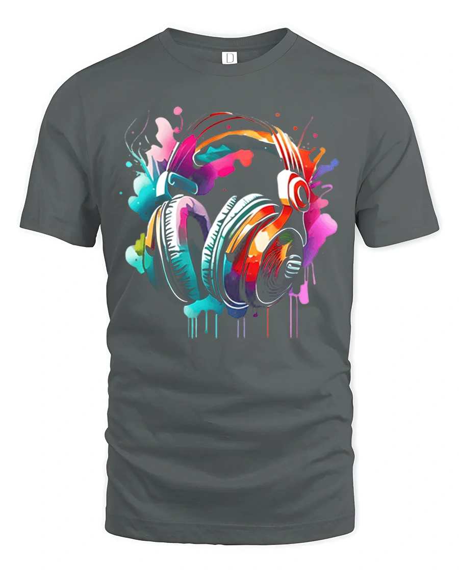 Designed for comfort and everyday wear, the Colorful Music Headphones Paint Splash Art Graphic T Shirt Tee feels soft, breathable, and easy to style.