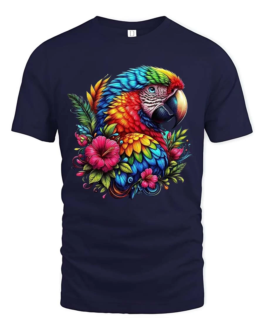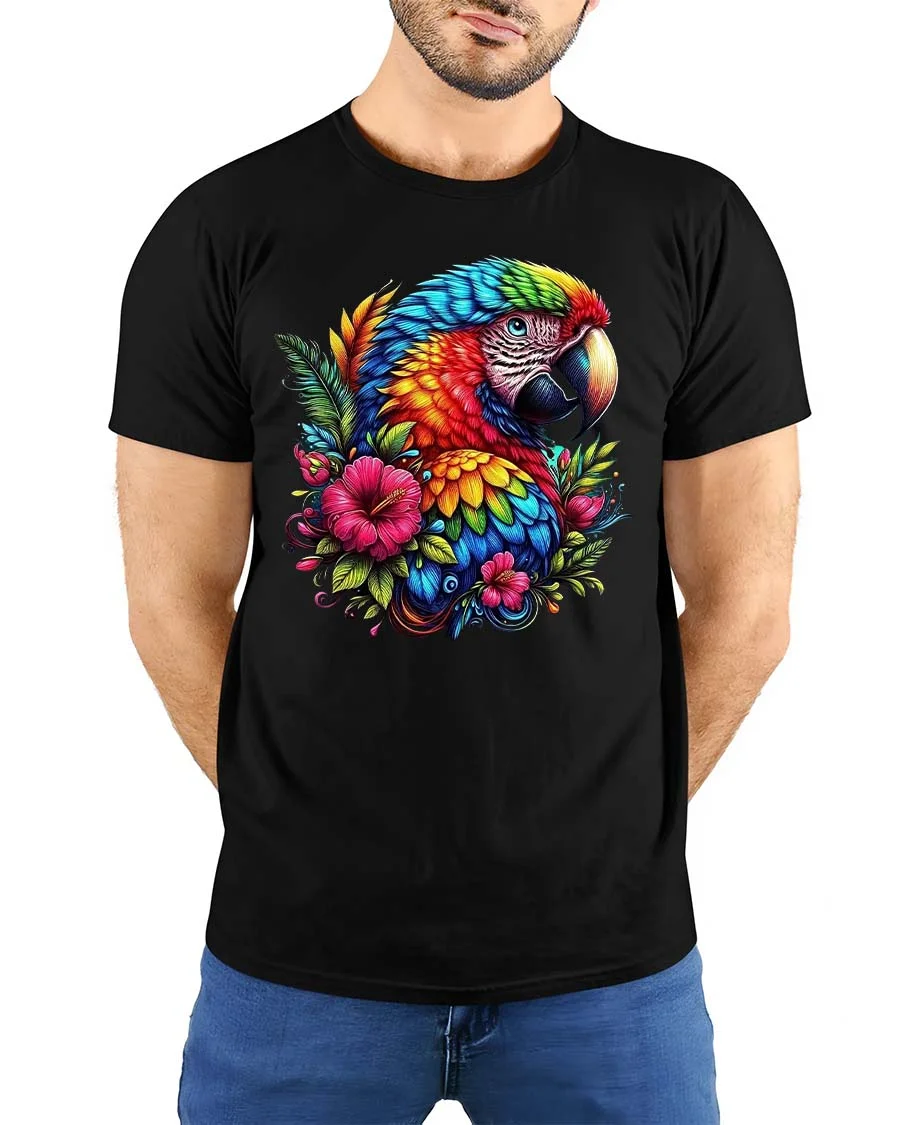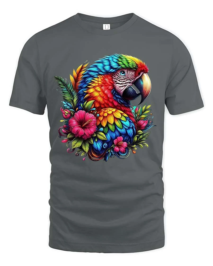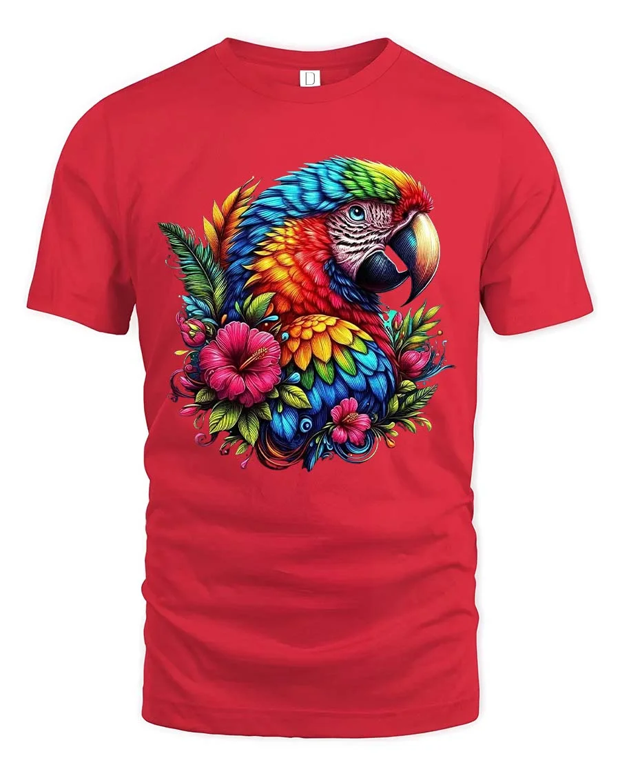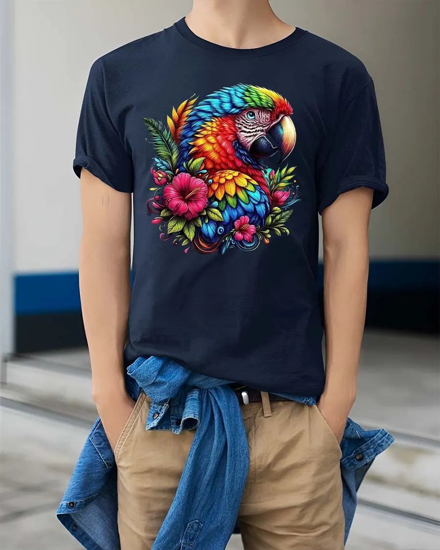 Colorful Parrot Floral Graphic T Shirt Tropical Bird Art Style brings a vibrant burst of color and natural beauty into everyday fashion.