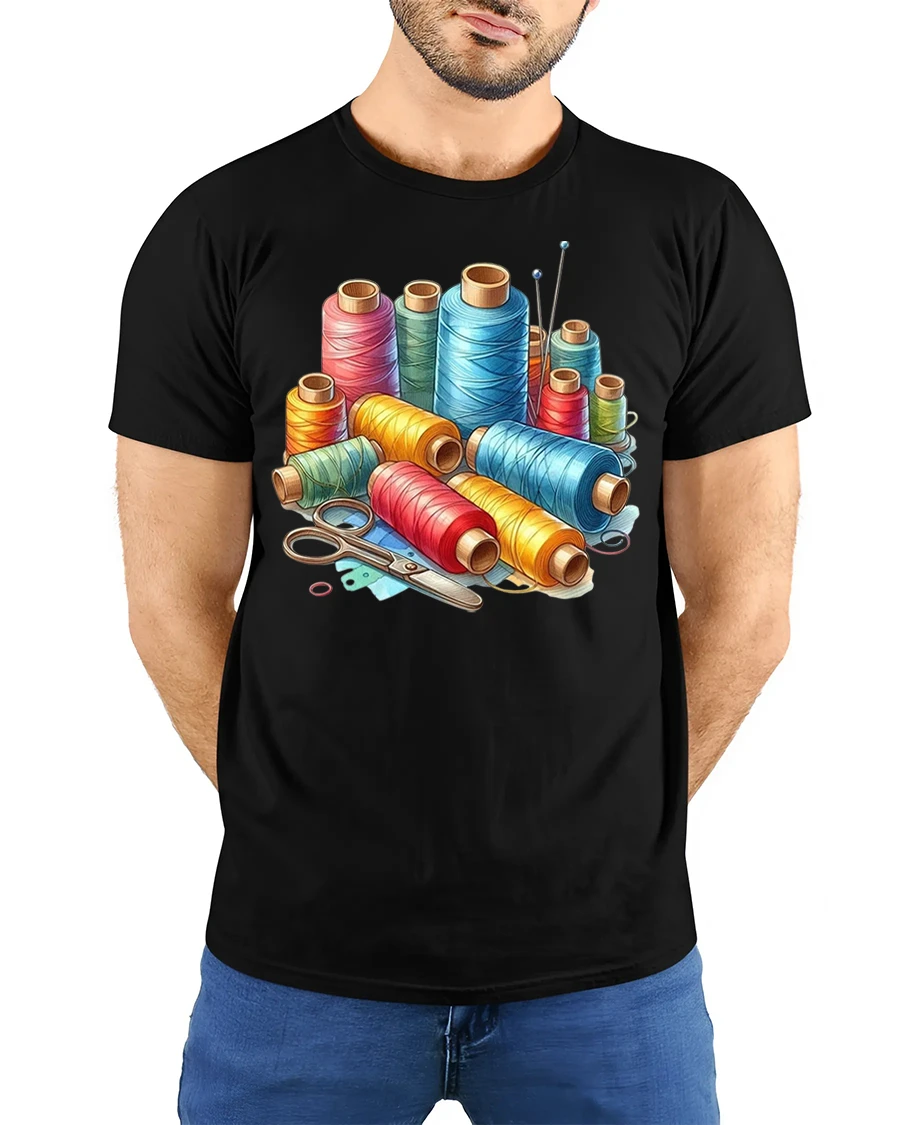 The Colorful Sewing Thread Graphic T Shirt Creative Craft Art is designed to feel comfortable while showcasing crisp detailed artwork.