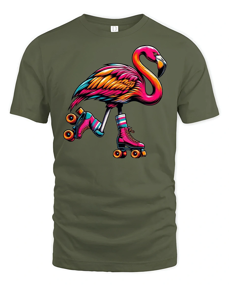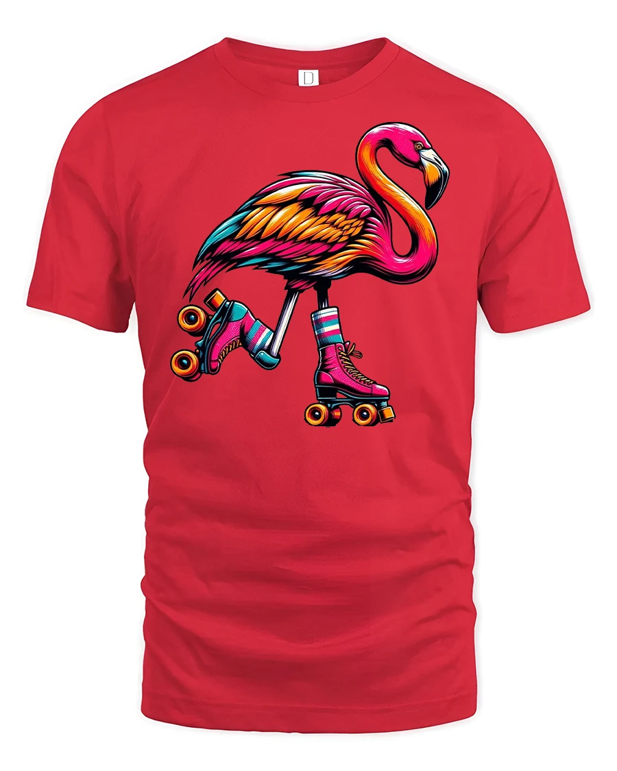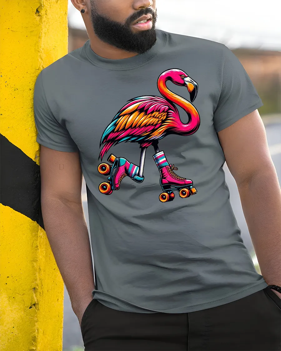 Perfect for animal lovers, retro fashion fans, or anyone who enjoys unique and quirky designs, this tee is made from soft, breathable fabric for all-day comfort. Whether you’re hitting the boardwalk, hanging out with friends, or just want to add some tropical fun to your outfit, this flamingo skating shirt delivers style with a smile.