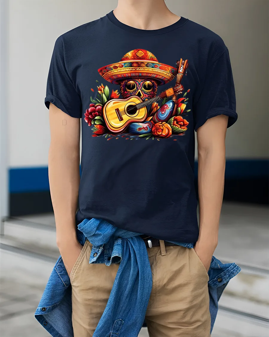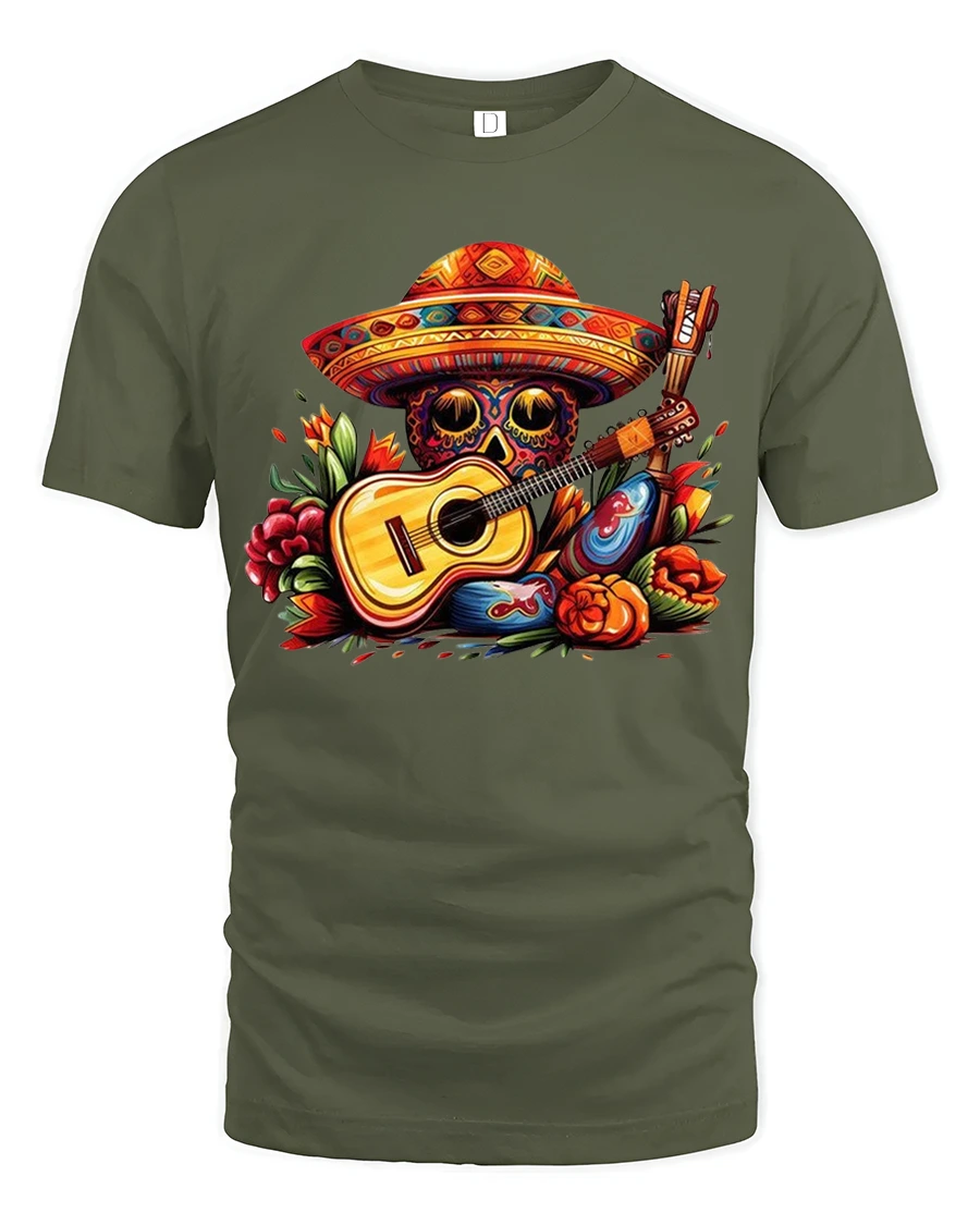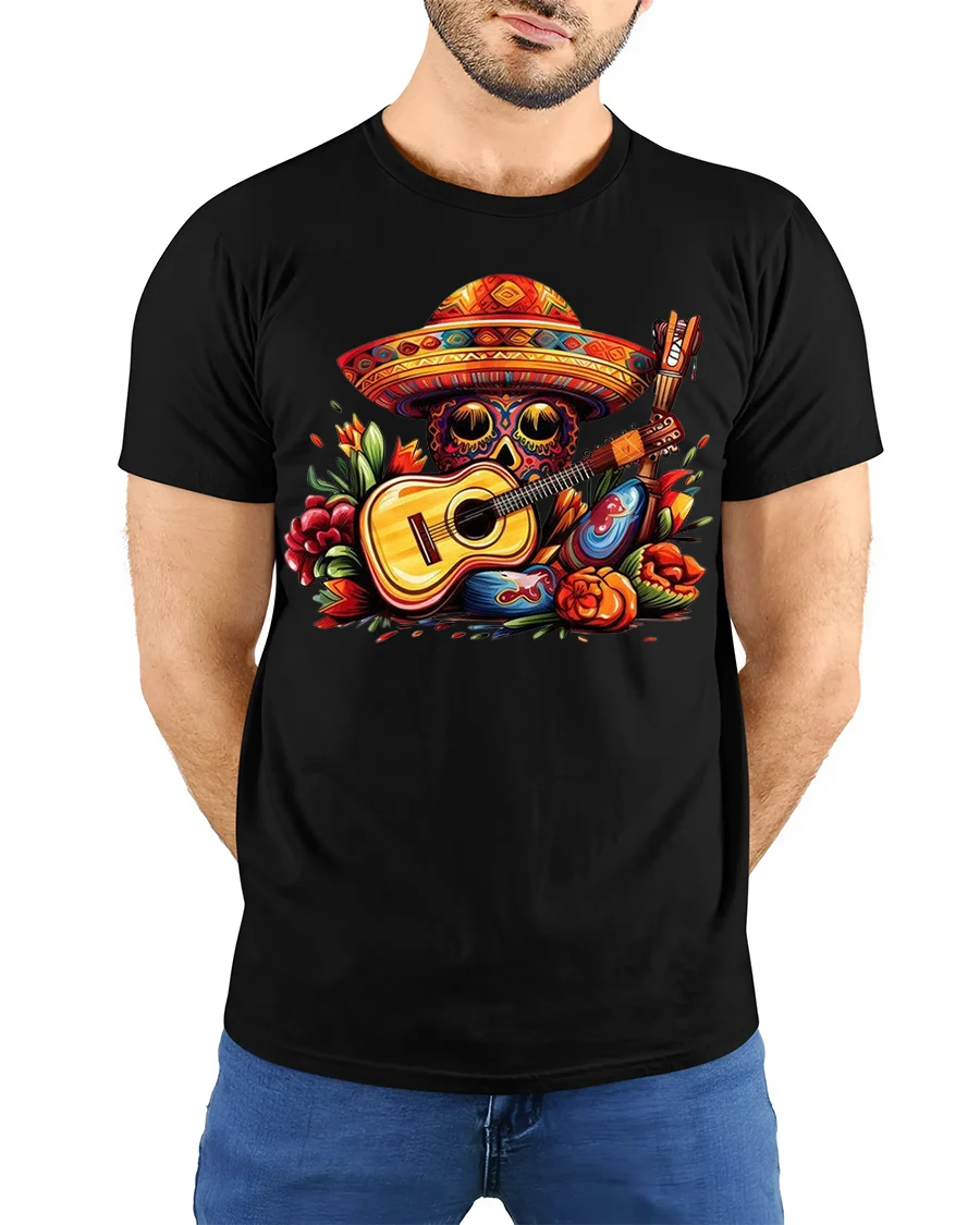 The Colorful Skull Guitar Art Tee Vibrant Music Fiesta Illustration brings rhythm color and artistic energy into one eye catching wearable design.
