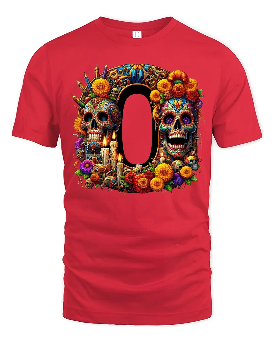 Colorful Sugar Skull Tee showcases a striking and artistic design featuring two beautifully decorated sugar skulls surrounded by bright flowers, candles and vibrant ornamental details. The bold colors and intricate patterns create a captivating visual that stands out in any setting. This unique artwork blends tradition, creativity and expressive style, making it a memorable piece for those who appreciate detailed graphic designs.