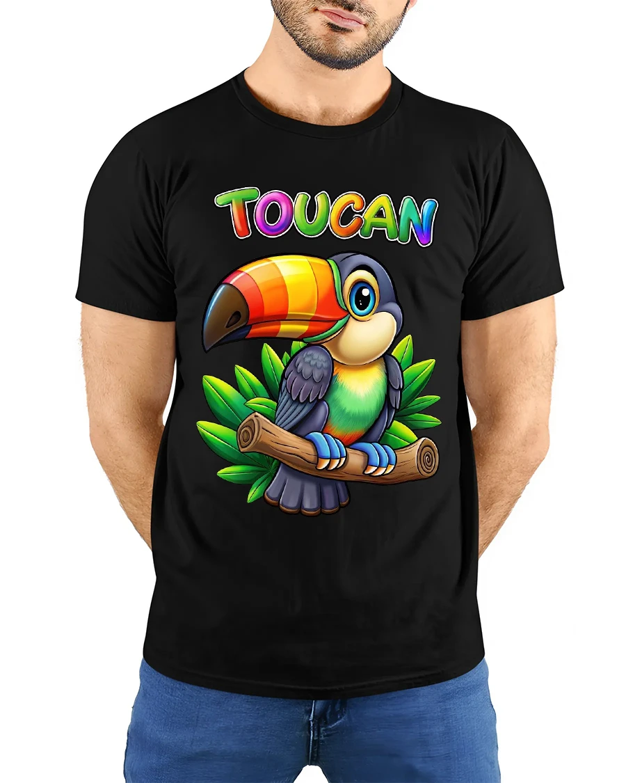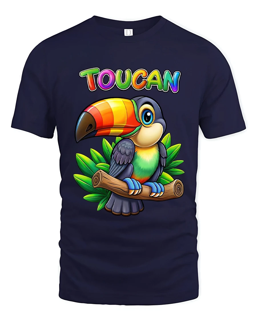 Colorful Toucan Tee with Tropical Cartoon Bird Jungle Artwork