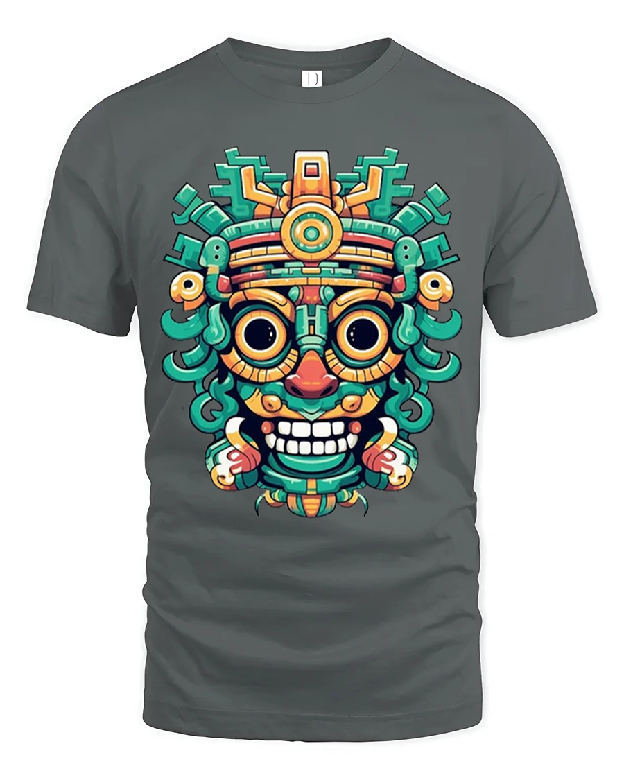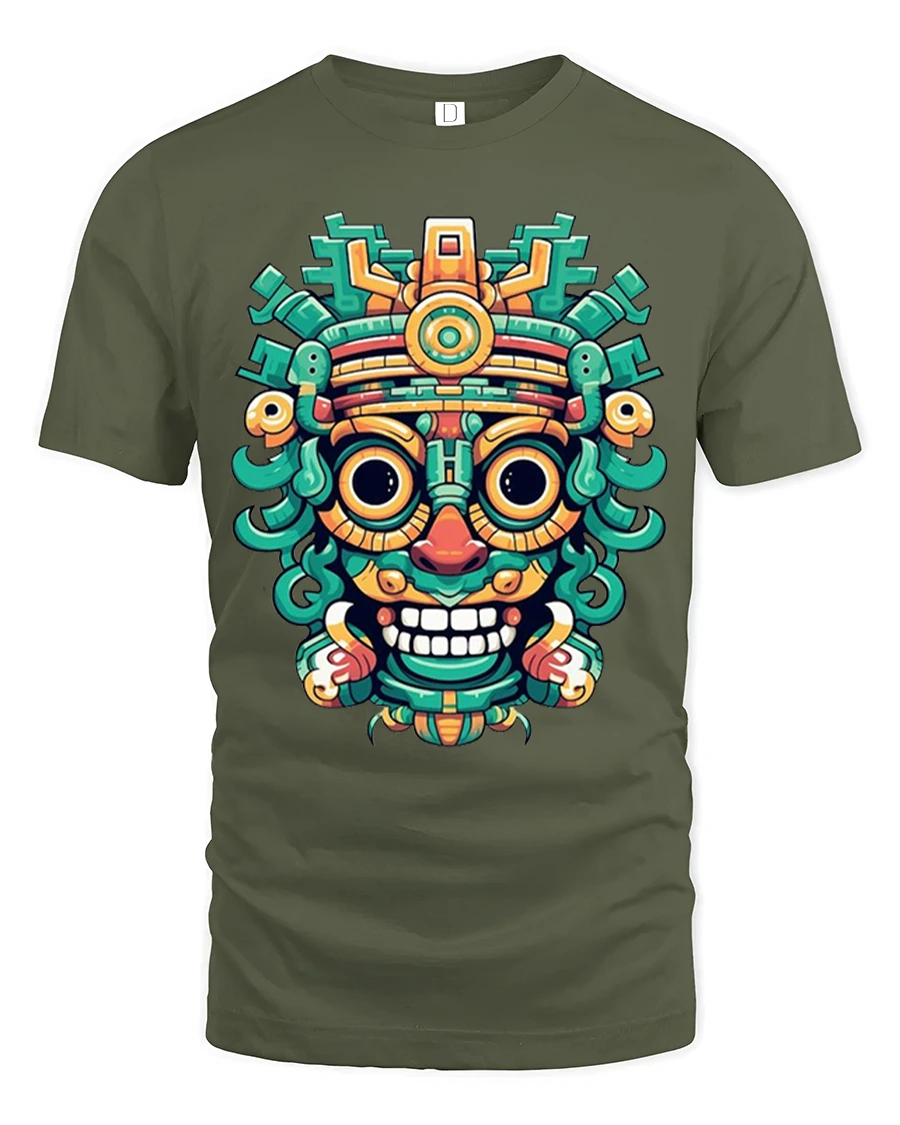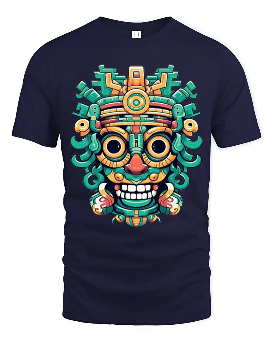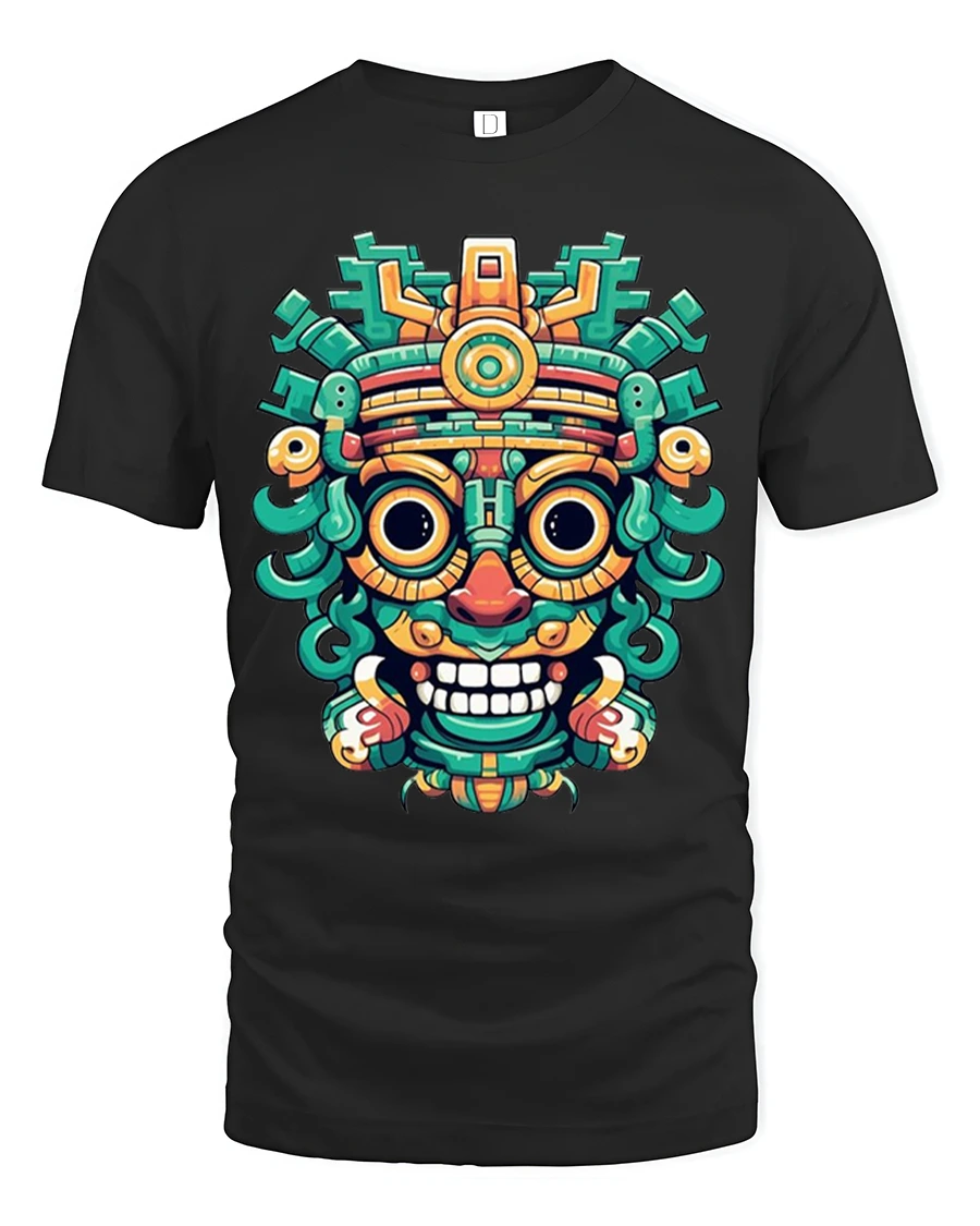 The Colorful Tribal Mask Art Tee Bold Aztec Inspired Street Design brings ancient symbolism and modern creativity together in a powerful visual statement.