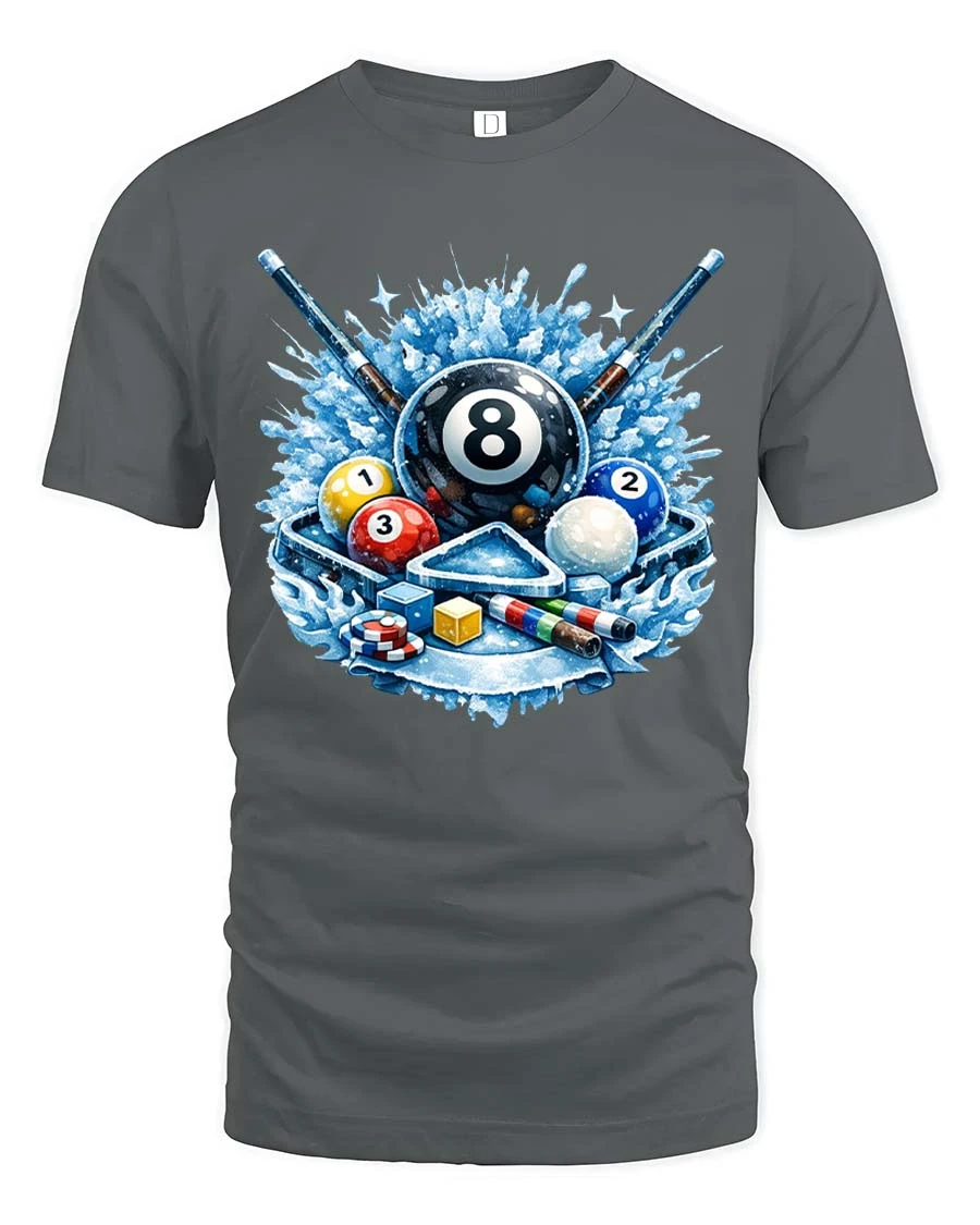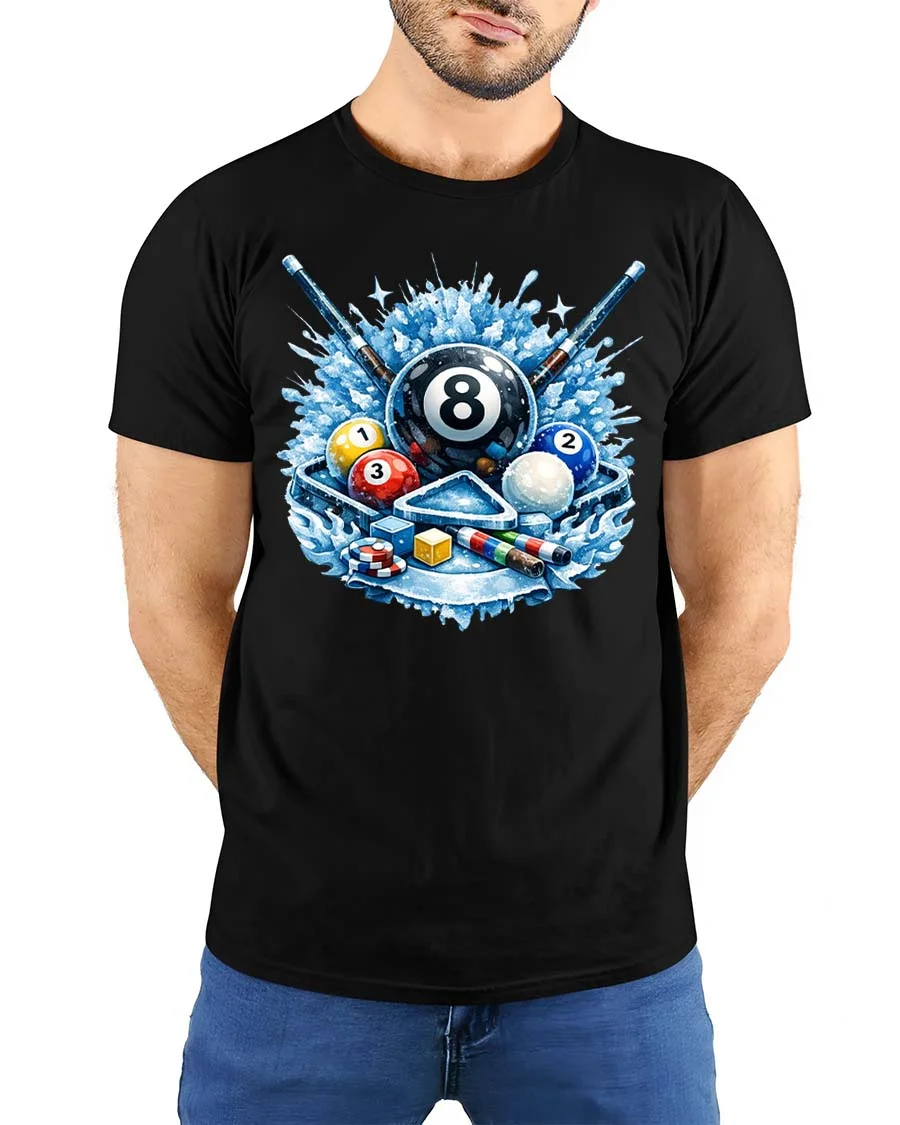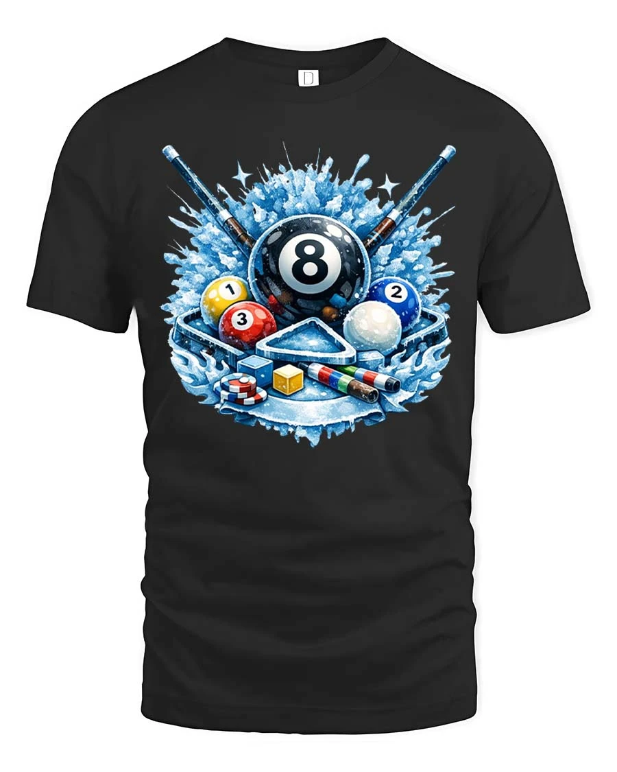 Cool Billiards 8 Ball Splash Graphic T-Shirt Pool Player Tee features a bold and energetic design inspired by the excitement of cue sports.