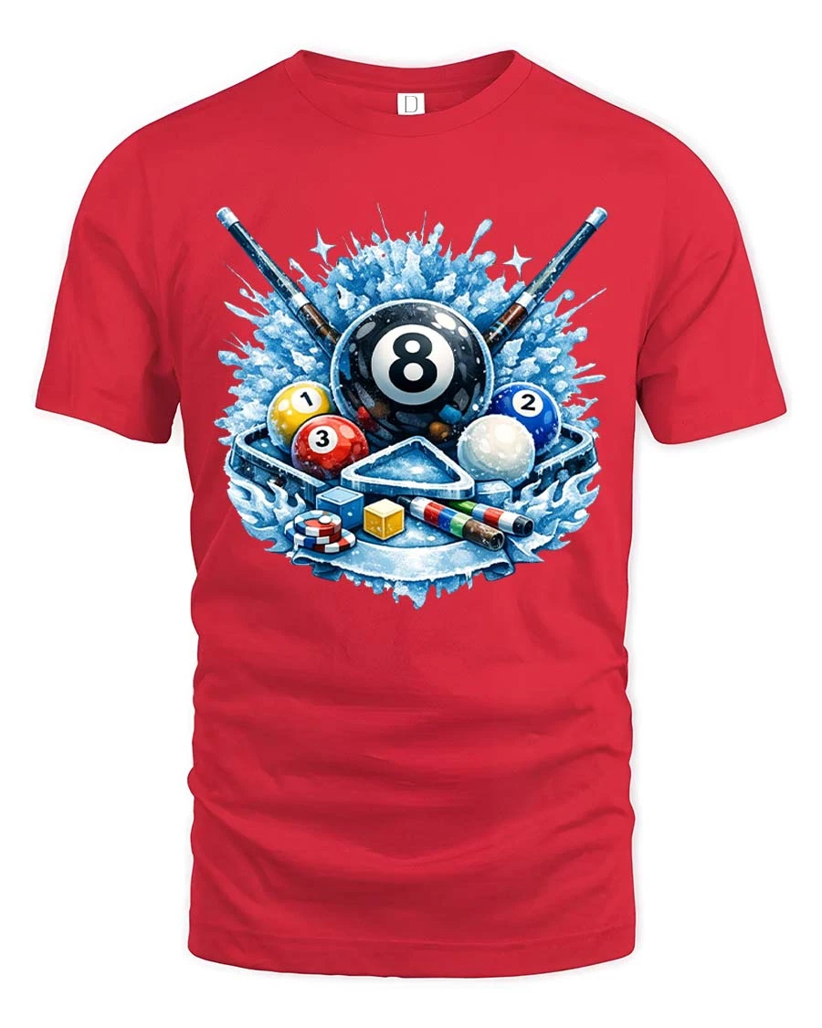 Cool Billiards 8 Ball Splash Graphic T-Shirt Pool Player Tee - red t-shirt on white background