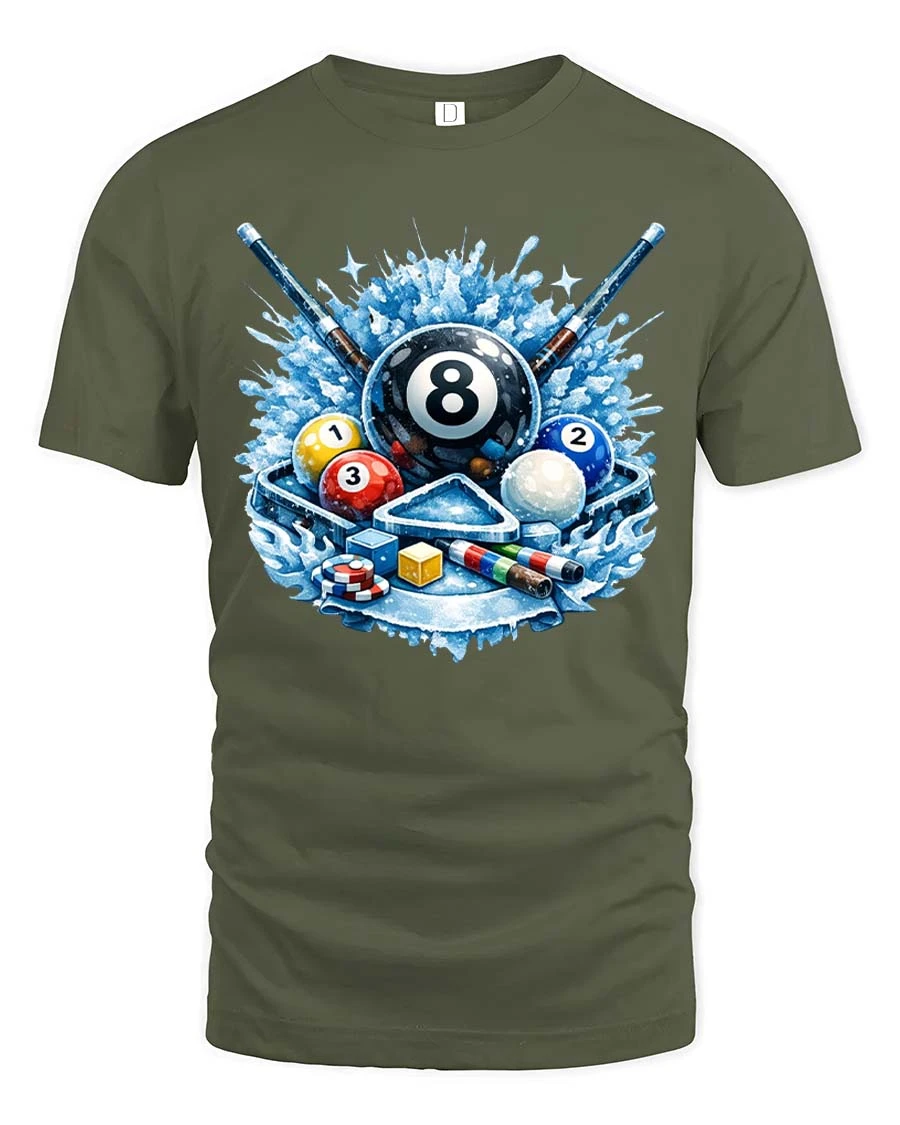 Cool Billiards 8 Ball Splash Graphic T-Shirt Pool Player Tee - military green t-shirt on white background