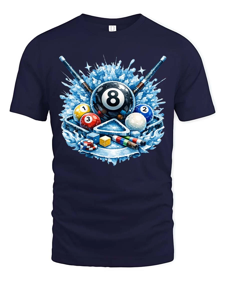 Cool Billiards 8 Ball Splash Graphic T-Shirt Pool Player Tee - navy t-shirt on white background