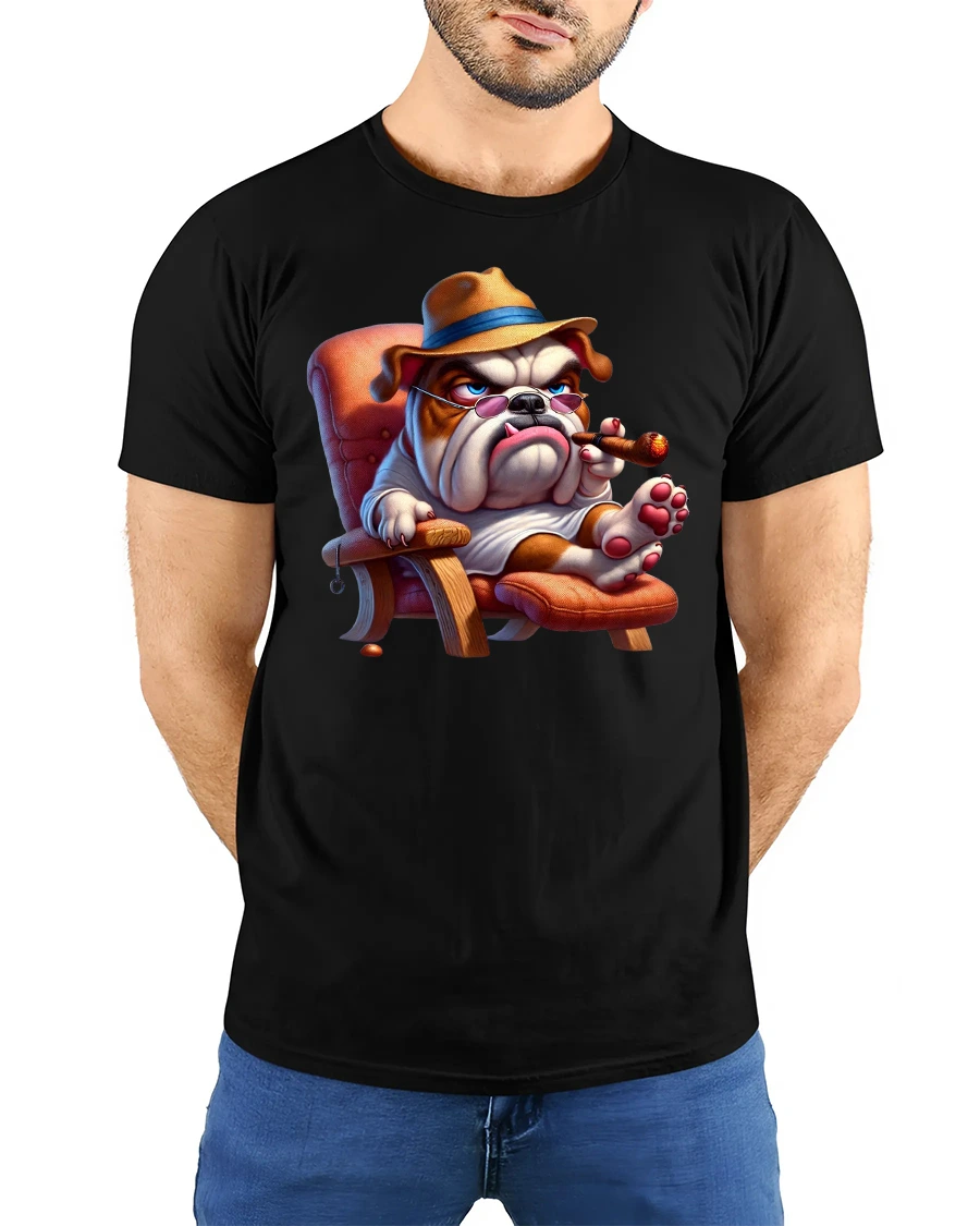 SKU: IMPD1110a5-1 Category: Funny Tags: animal humor shirt, boss dog t-shirt, bulldog humor tee, bulldog t-shirt, chill dog t-shirt, cigar dog shirt, cool bulldog shirt, cute funny dog tee, dog lover gift, funny dog tee, funny pet lover tee, gangster dog t-shirt, lazy dog graphic tee, relaxed bulldog top, smoking bulldog shirt