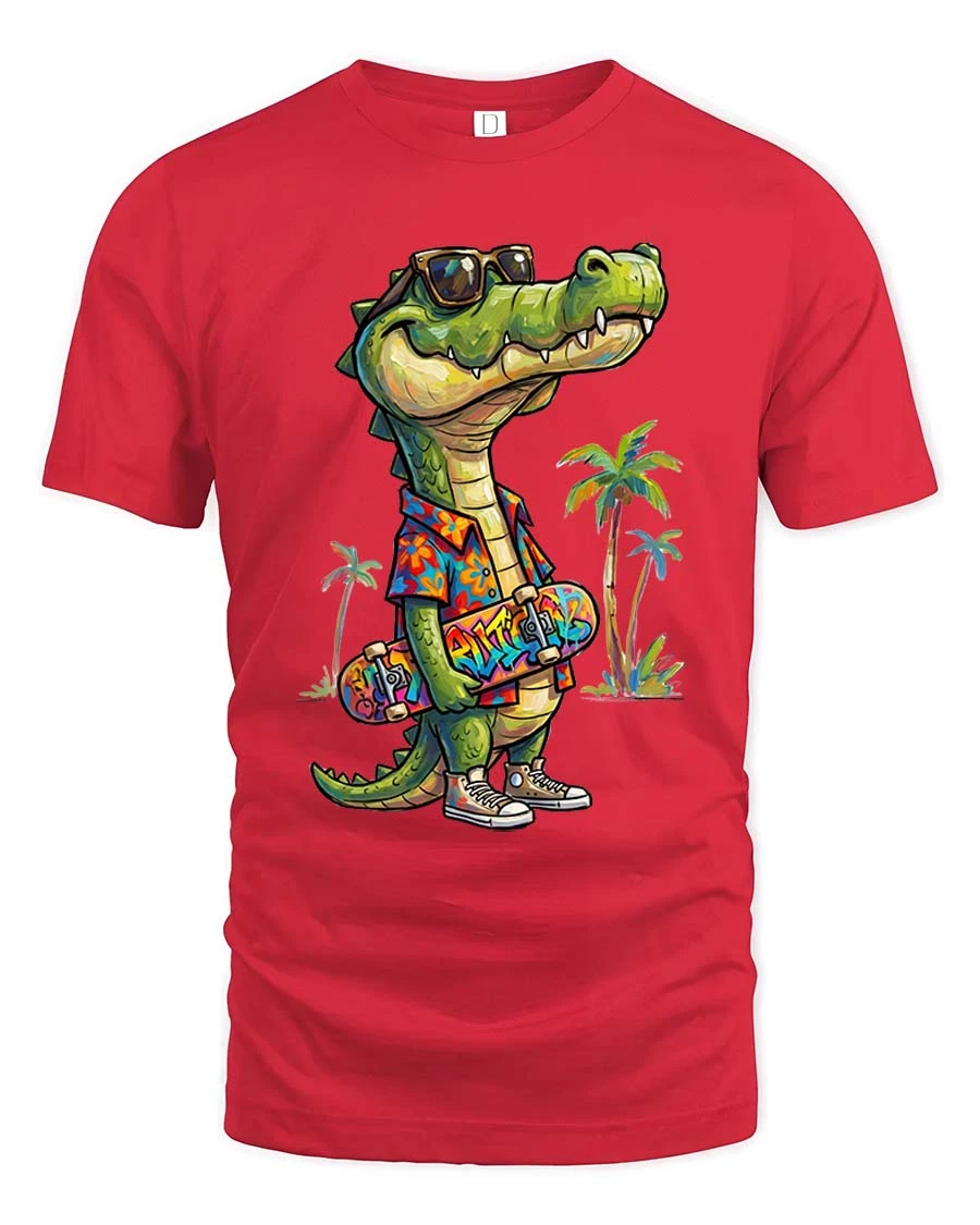 Cool Crocodile Skater Summer Vibes Graphic T Shirt Style - red t-shirt on white background