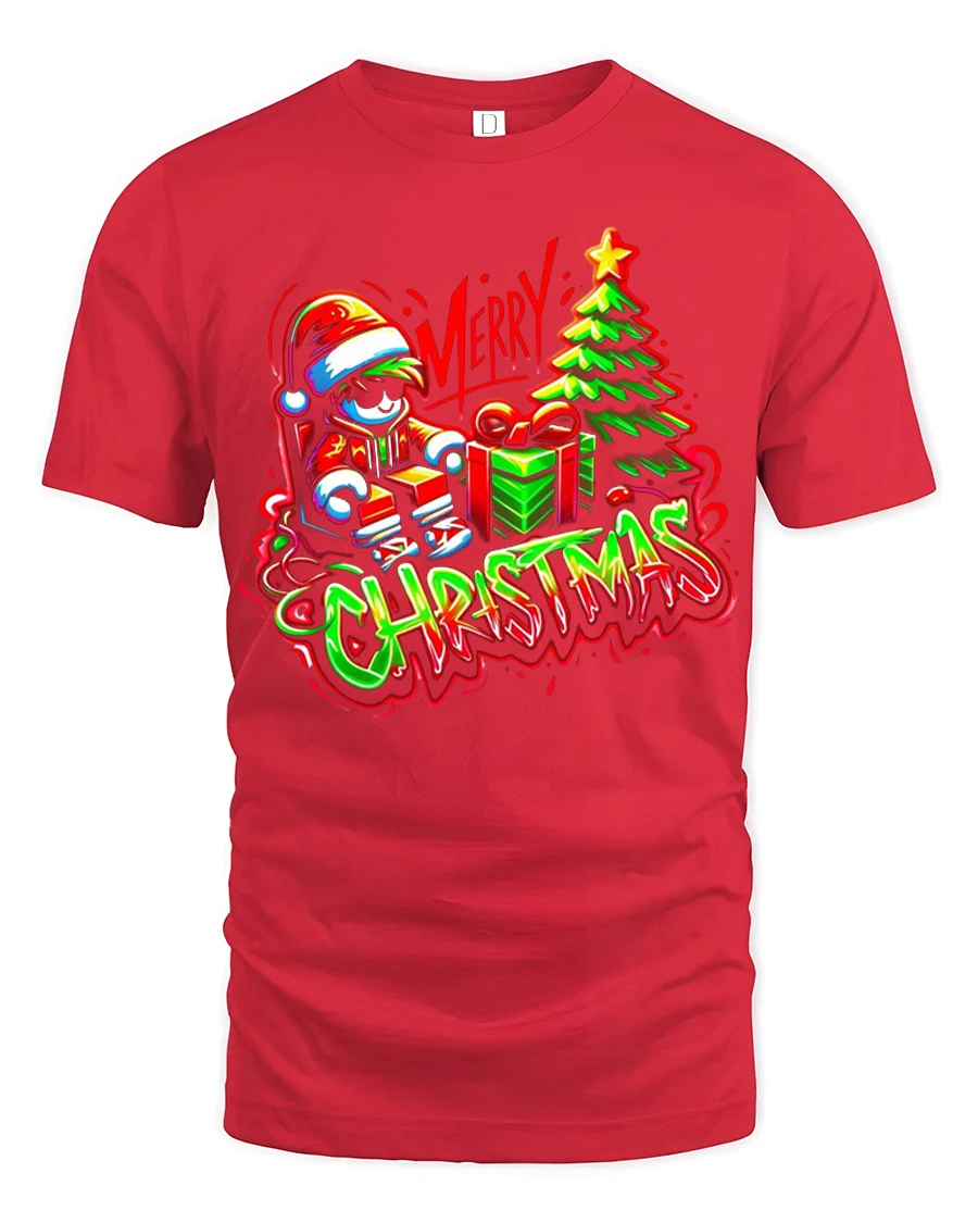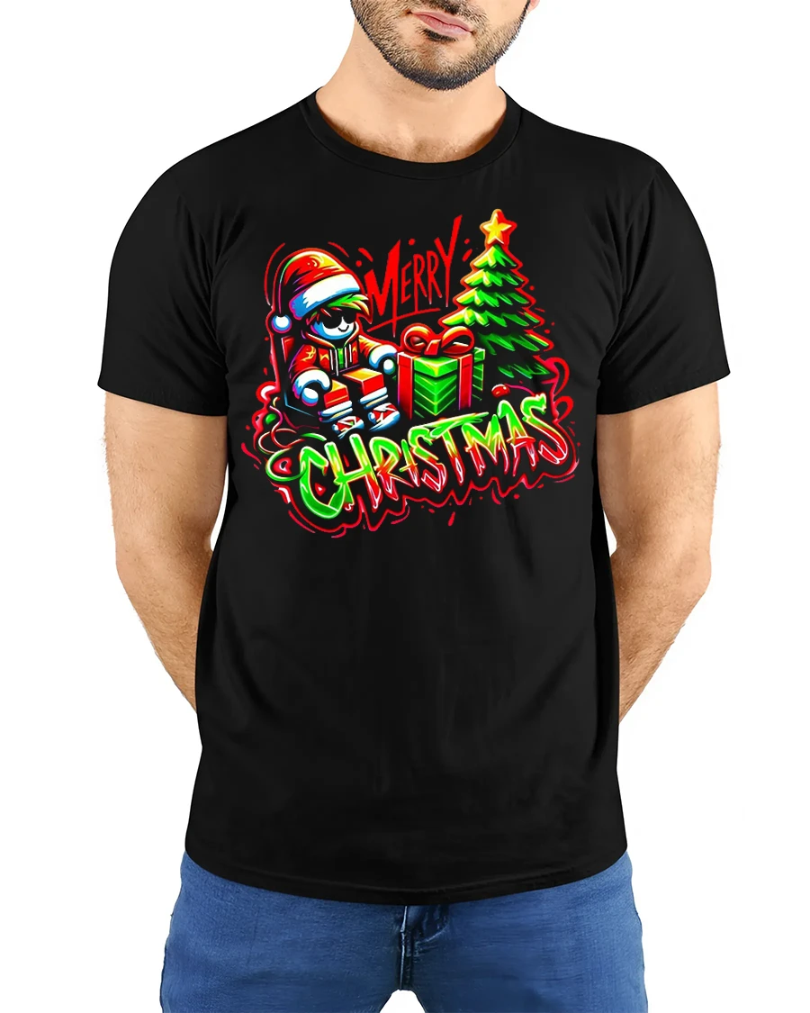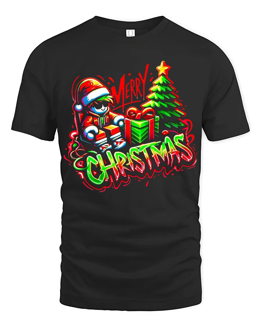 Wearing the Cool Graffiti Merry Christmas Santa Gift Tree Neon Art Tee adds a unique and energetic style to your seasonal wardrobe. The crisp lines and bold contrasts give the artwork a dynamic feel, while the playful Santa character brings humor and charm. Whether you enjoy streetwear, Christmas fashion with attitude, or simply want a standout festive tee, this design adds cheer in a bold, creative way.
