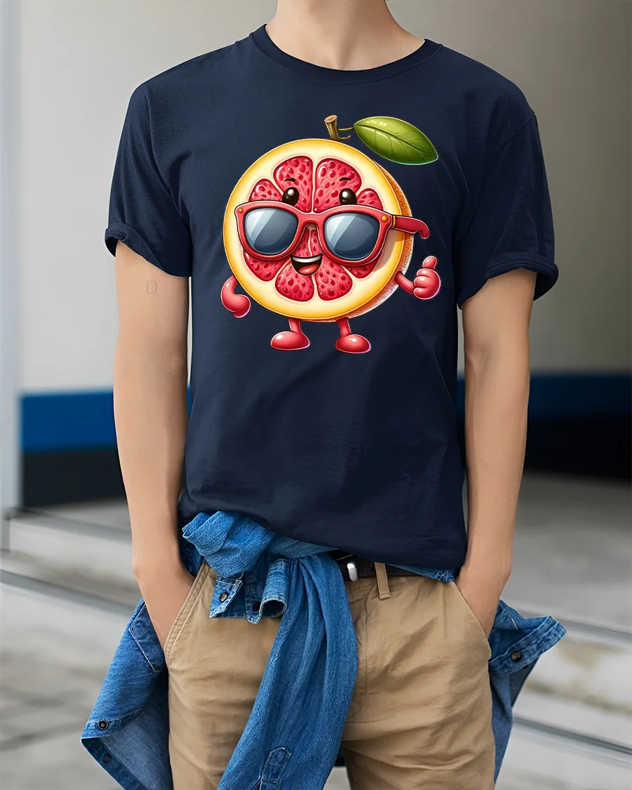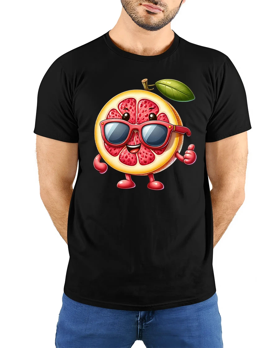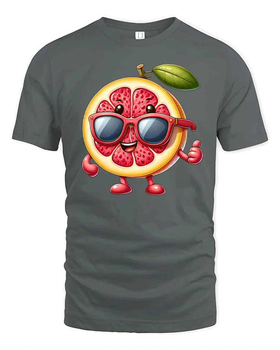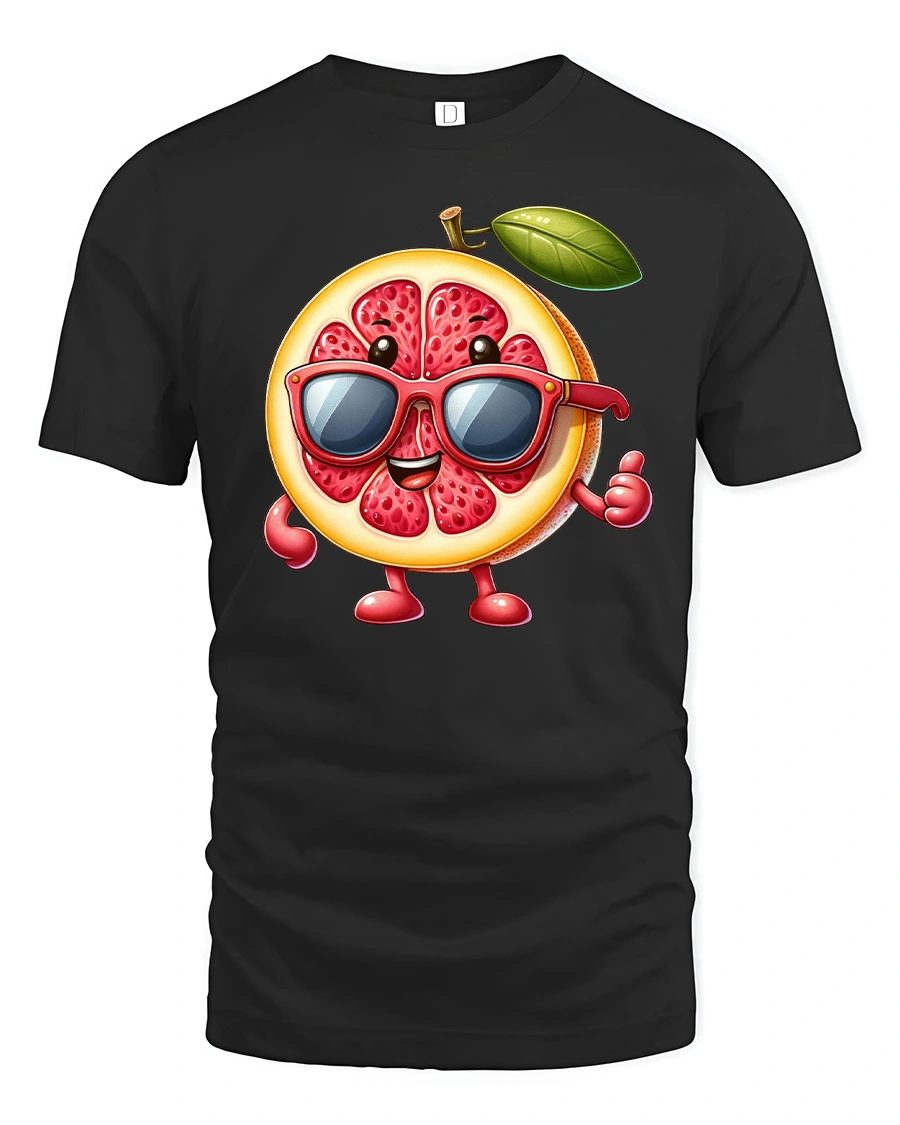 Featuring a cheerful grapefruit character rocking red shades, this tee is perfect for anyone who loves bold, playful designs and summertime fun.