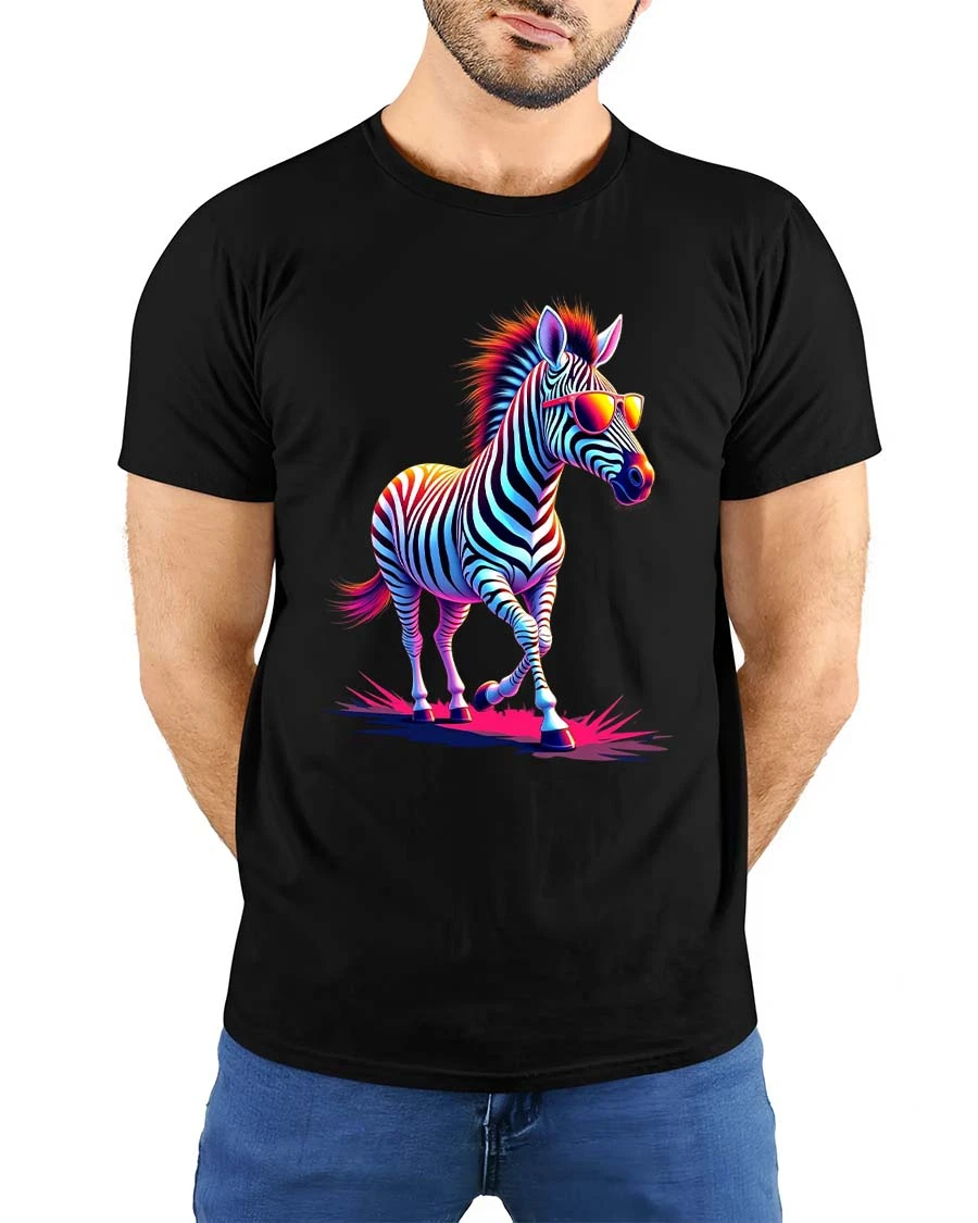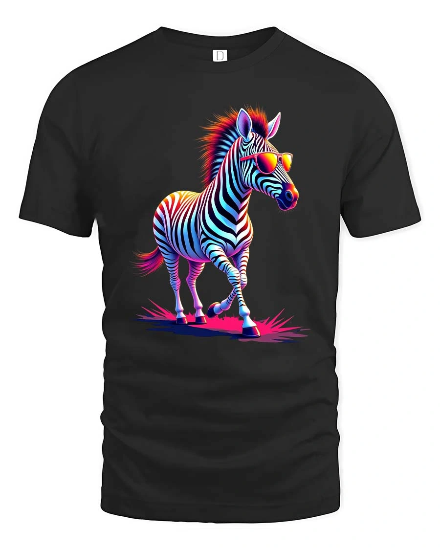 Featuring a stylish zebra rocking colorful sunglasses and glowing hues, this graphic tee captures a playful retro vibe that instantly stands out.