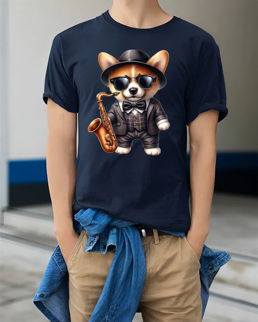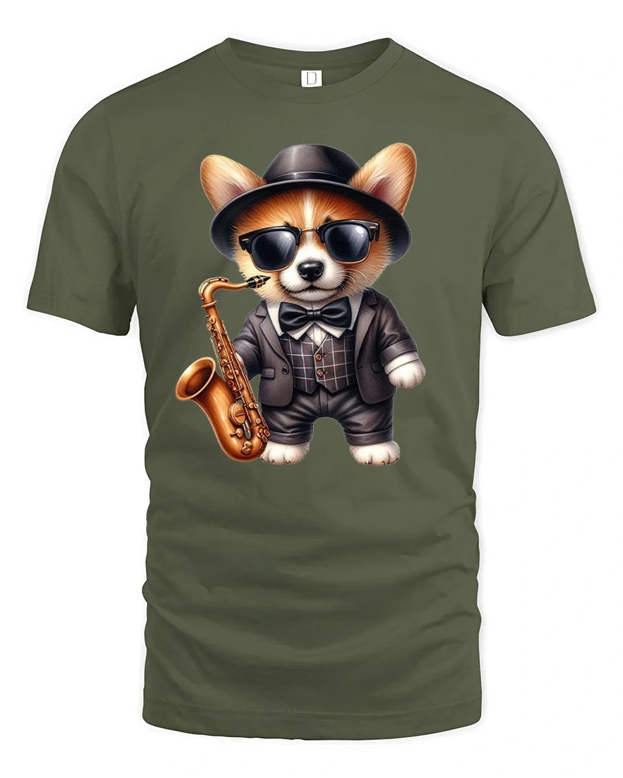 Featuring an adorable dog dressed in a classy suit, shades, and hat while holding a saxophone, this tee is perfect for music fans, jazz lovers, and anyone who enjoys fun, stylish designs.