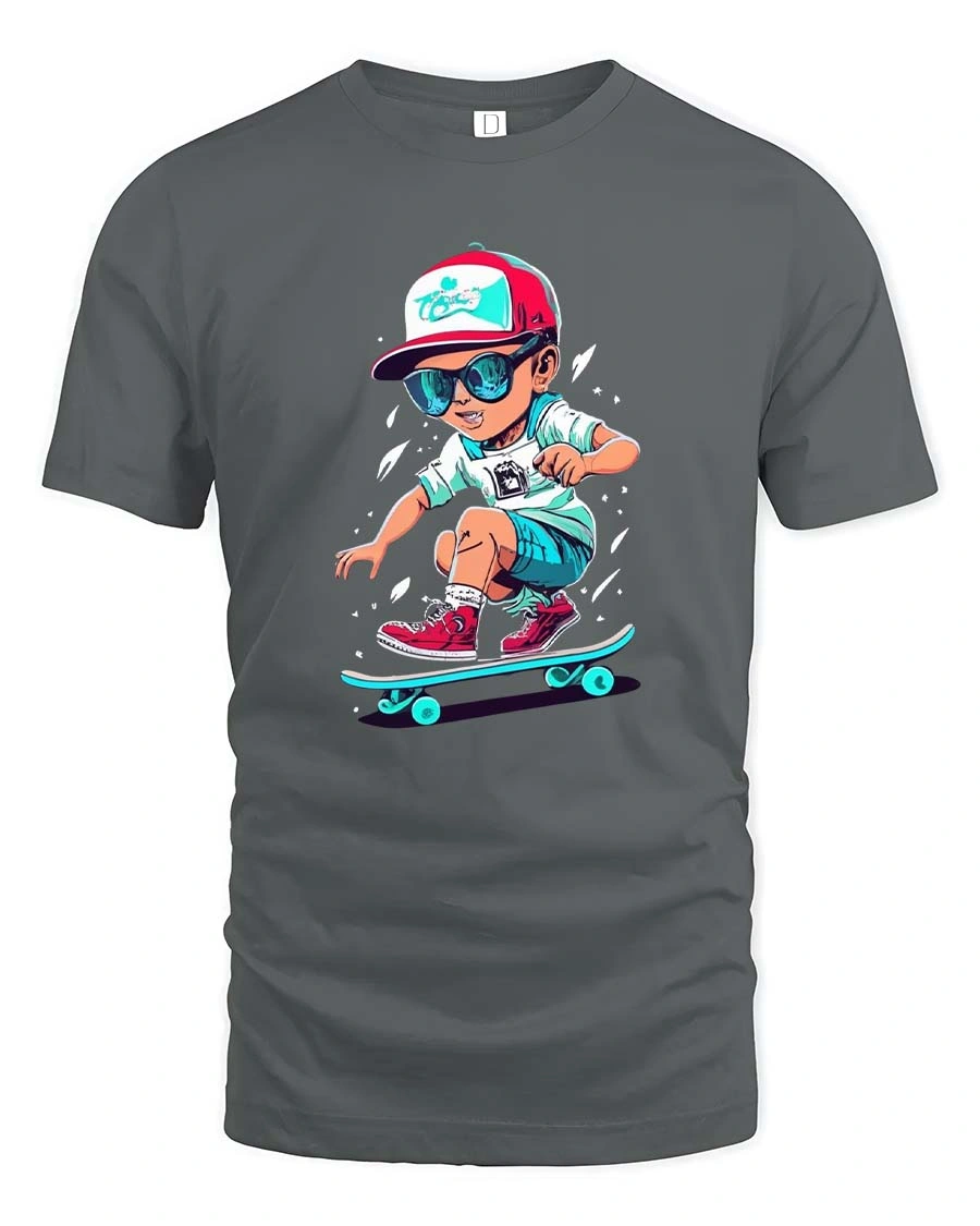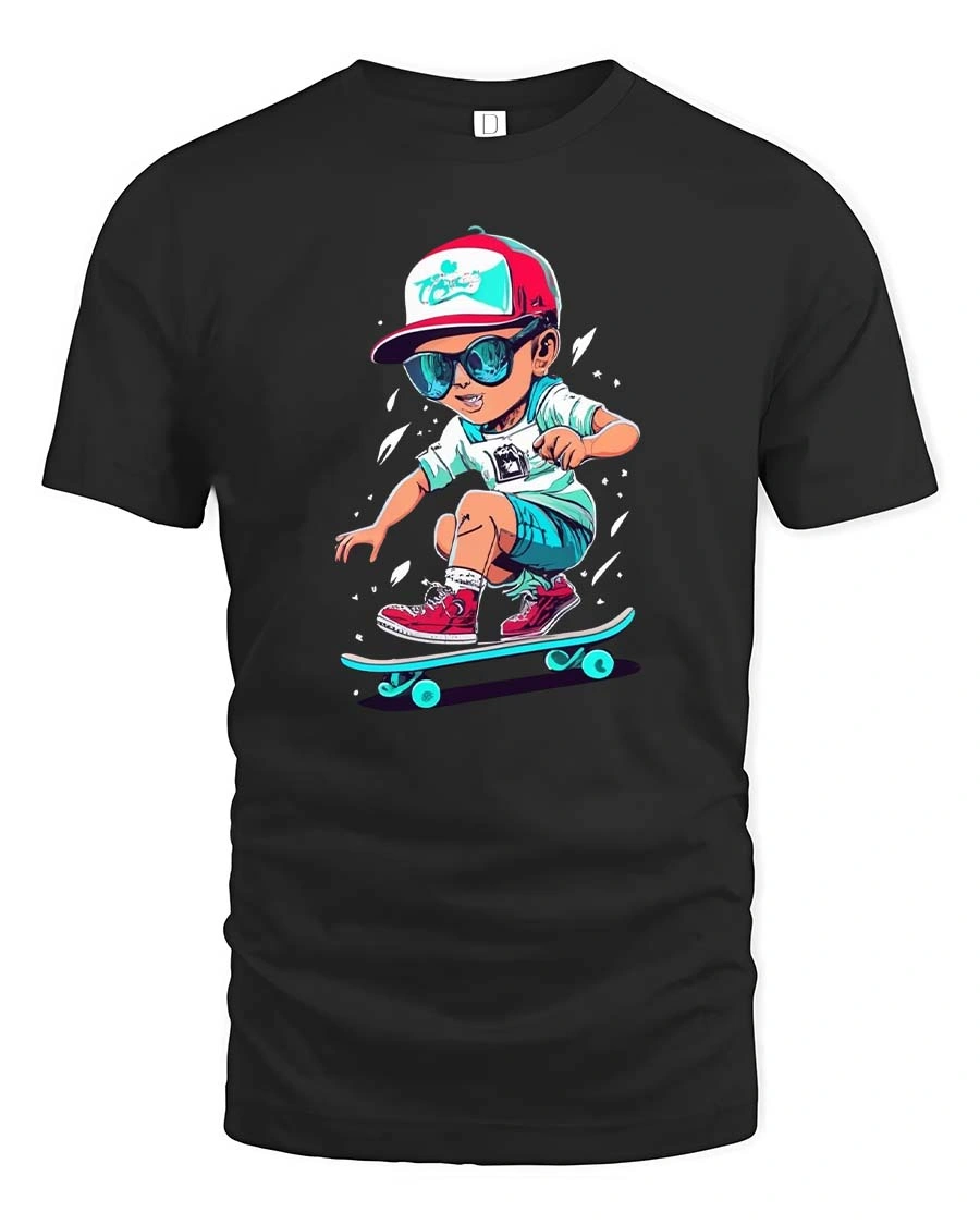 The Cool Skateboarding Kid Cartoon Street Style Graphic T Shirt captures the fun and energetic spirit of skate culture with a vibrant cartoon design.