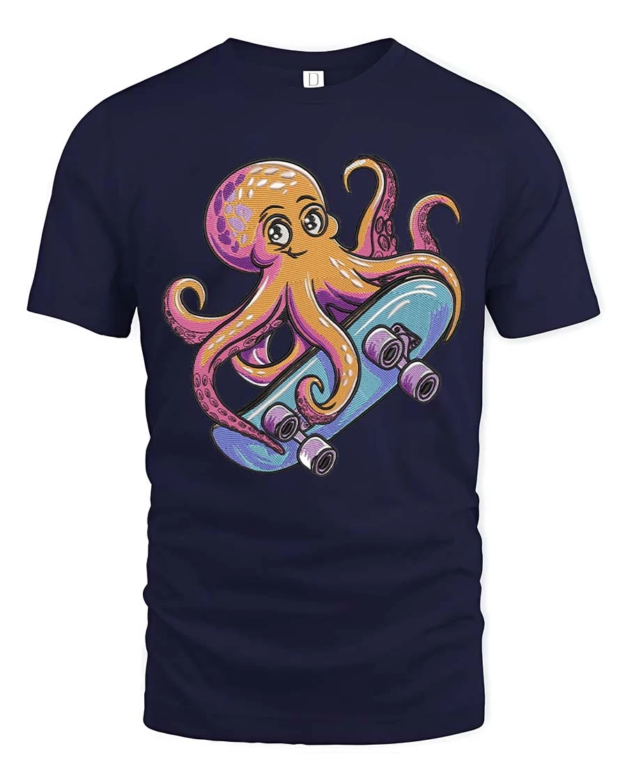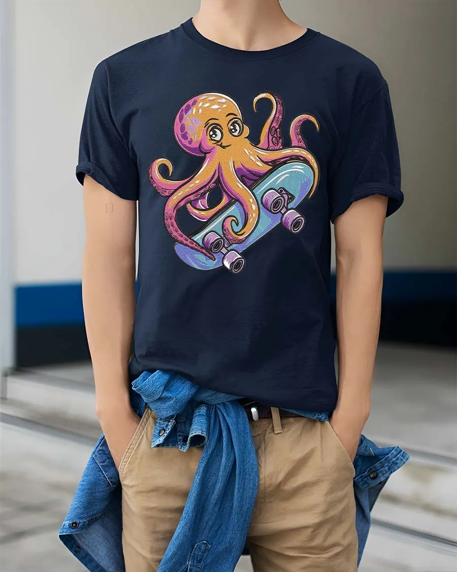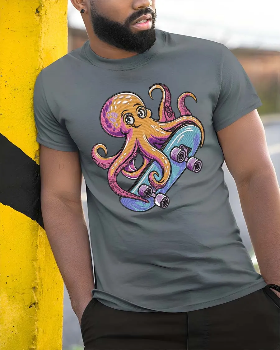 Cool Skateboarding Octopus Cartoon Fun Ocean Style Tshirt brings a playful mix of ocean life and street style energy.
