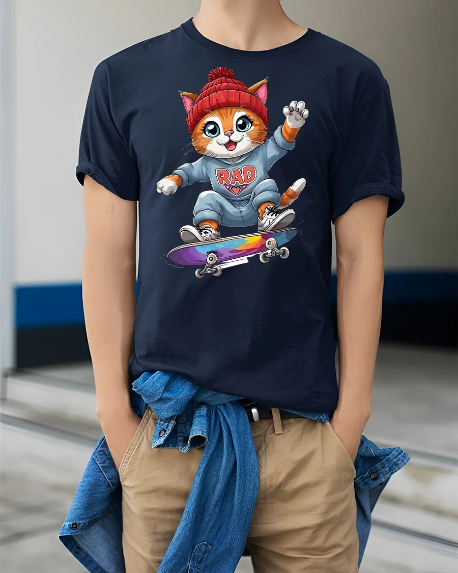 Crafted with soft and breathable cotton blend fabric, this skater cat t-shirt delivers all-day comfort while keeping you stylish. Its bold design and vibrant print make it an ideal choice for casual wear, skatepark days, or even as a quirky gift for anyone who loves cats and street culture.