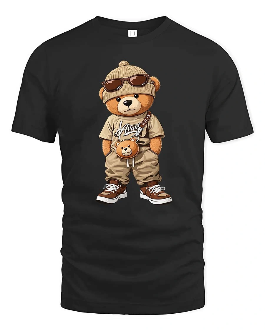 Cool Streetwear Teddy Bear Cartoon Graphic T Shirt Urban Style features a fashionable cartoon bear character with a confident and modern streetwear look.