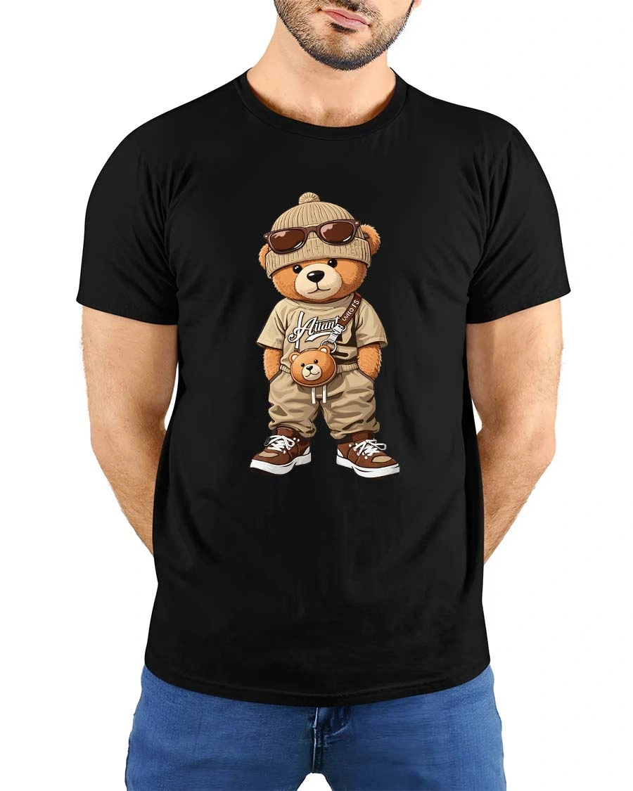 The cool teddy bear design pairs well with jeans, joggers, or streetwear outfits to create a modern urban look.