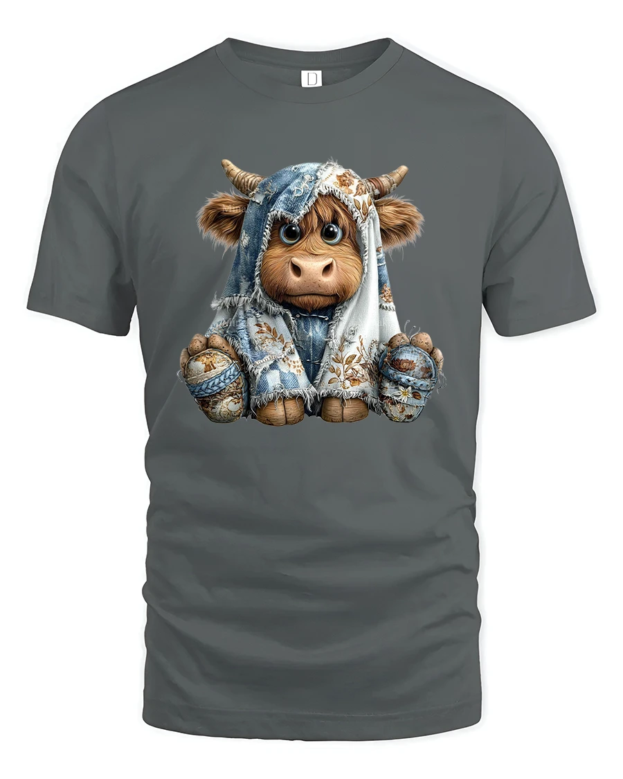 The Cozy Highland Cow Wrapped in Blanket Cute Tee Unisex brings a heartwarming touch to your wardrobe. Featuring an adorable highland cow snuggled up in a patterned denim-style blanket, this design captures the essence of comfort and countryside charm. Perfect for animal lovers, cozy season fans, or anyone who adores cute farm-inspired art.
