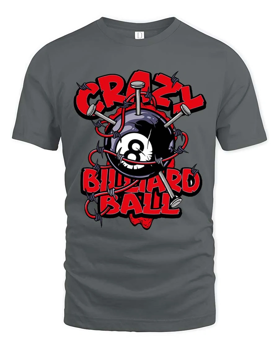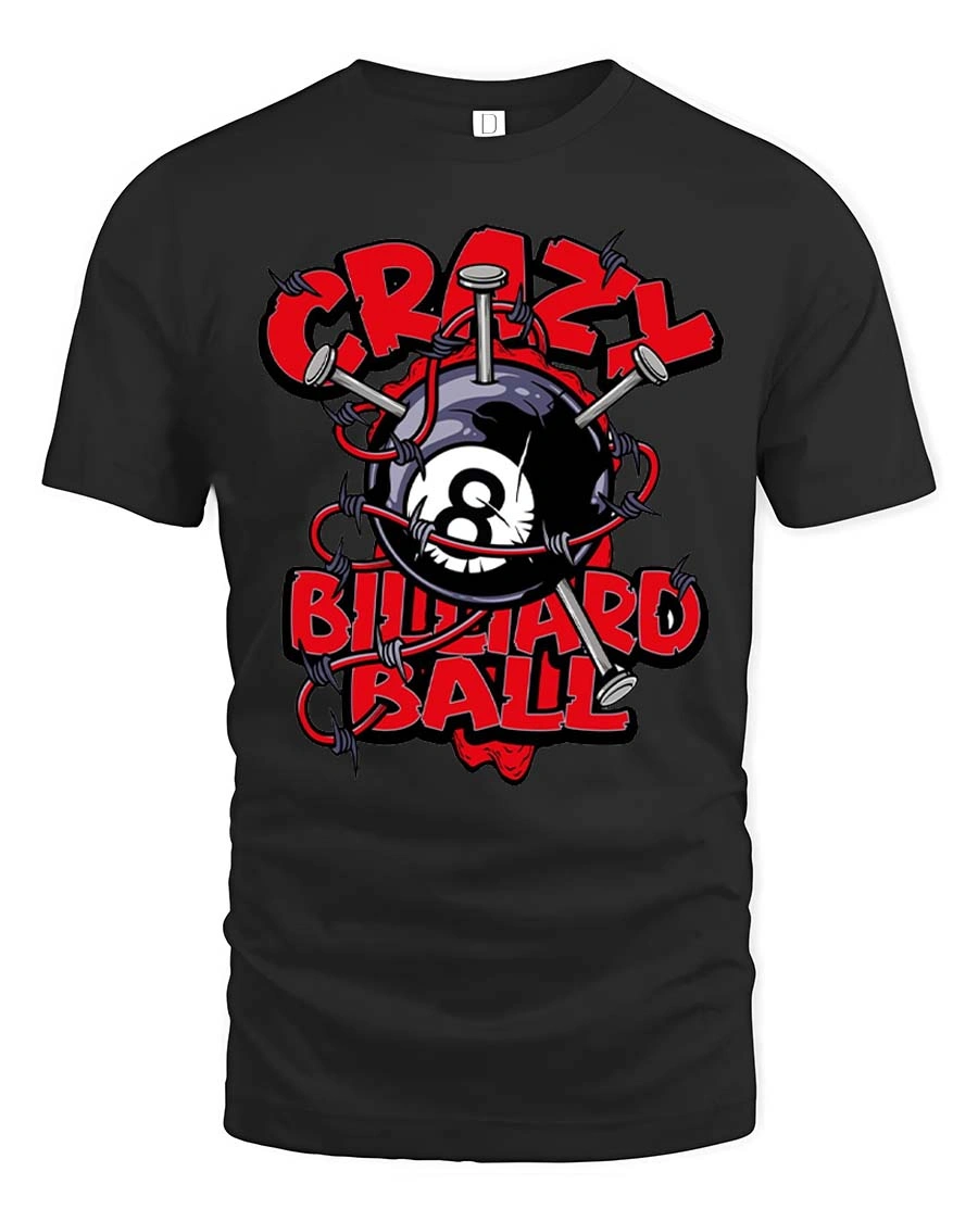 Crazy Billiard Ball Skull Style Funny Pool Graphic Tshirt brings a bold and edgy twist to classic cue sports style.