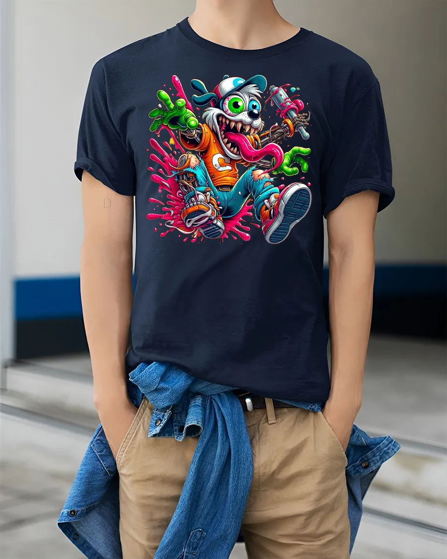Perfect for casual outings, parties, concerts, or skate sessions, the Crazy Cartoon Dog Splatter Graphic T-Shirt Funny is more than just apparel—it’s an expression of your energetic personality. Pair it with jeans, joggers, or sneakers to complete a bold urban look that always stands out.