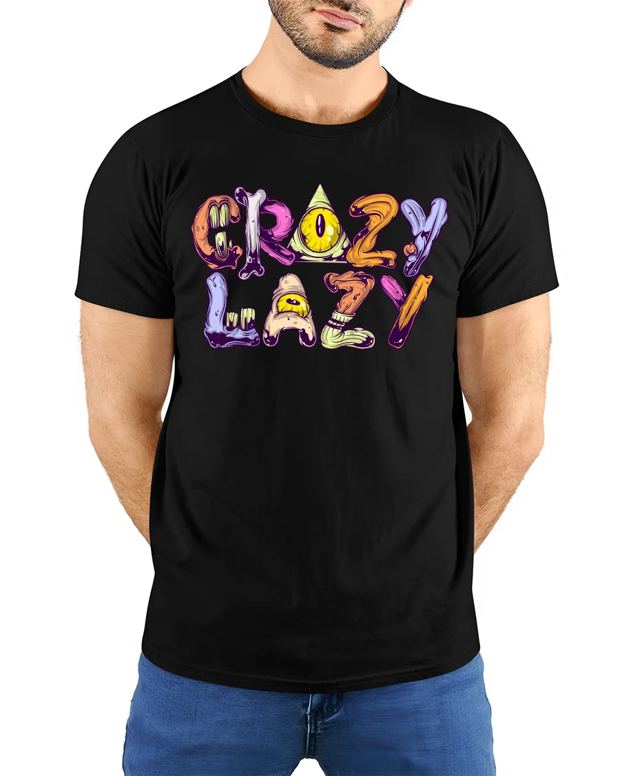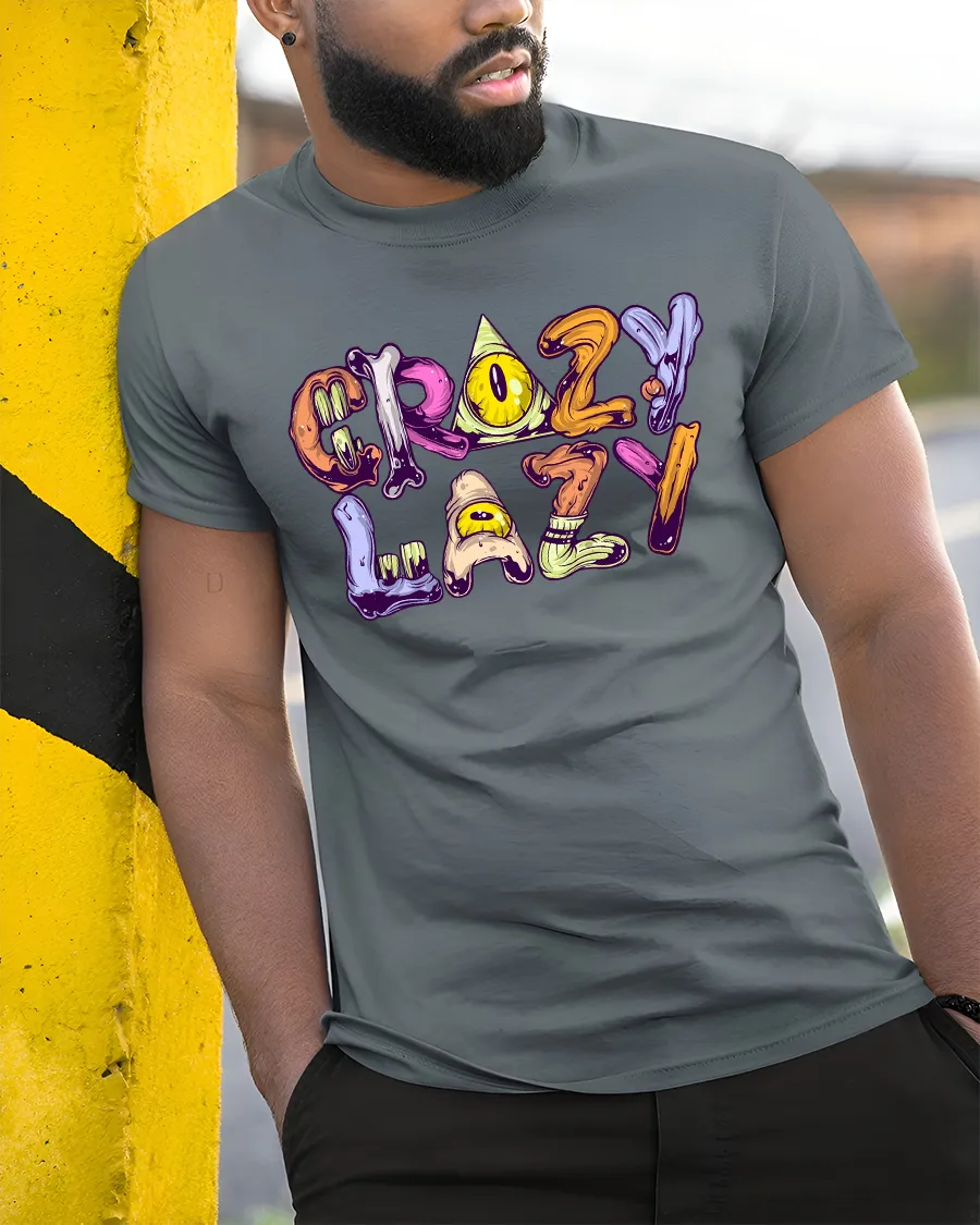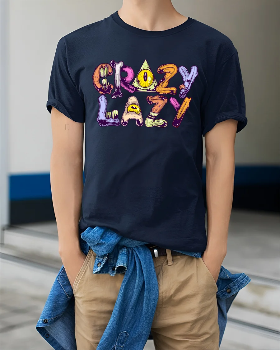 Stay comfy, colorful, and effortlessly cool with this Crazy Lazy Funny Cartoon Lettering Graphic T-Shirt, perfect for anyone who loves to relax in style.