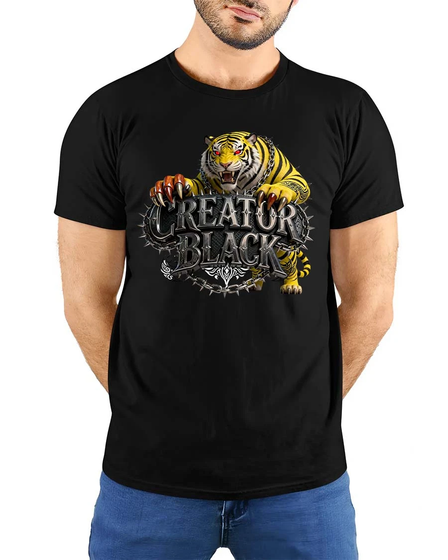 The Creature Black Tiger Graphic T Shirt Fierce Wild Power Style features an intense roaring tiger design that represents strength, dominance, and fearless energy.