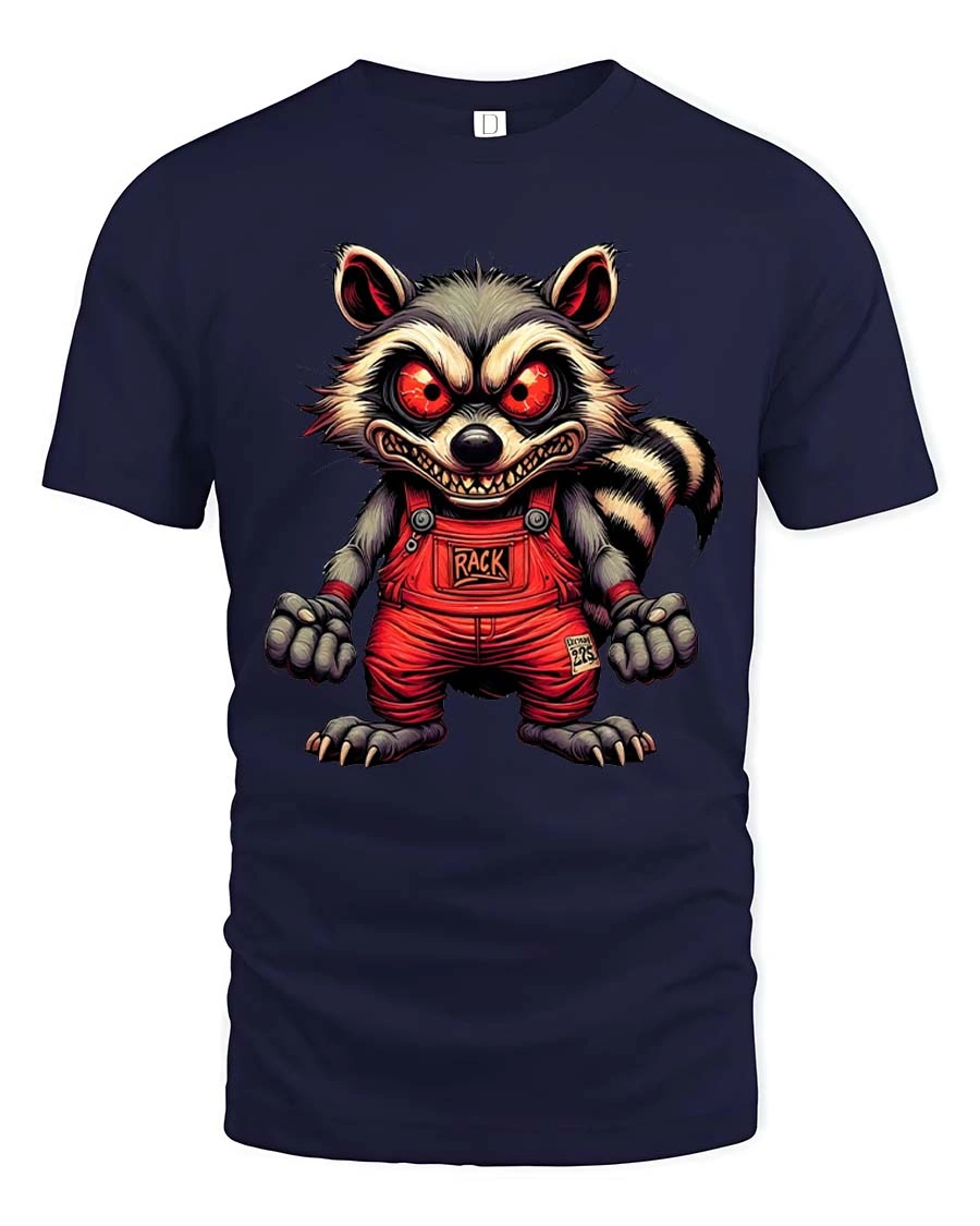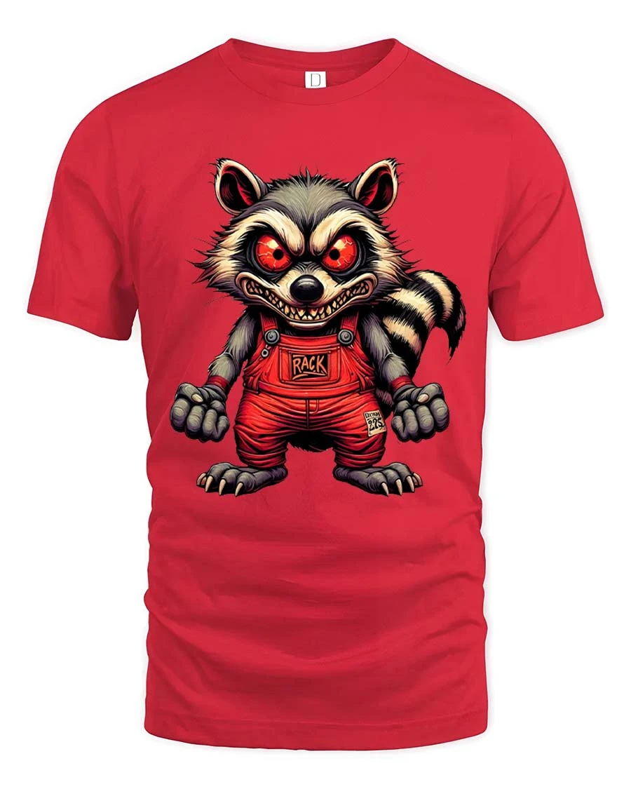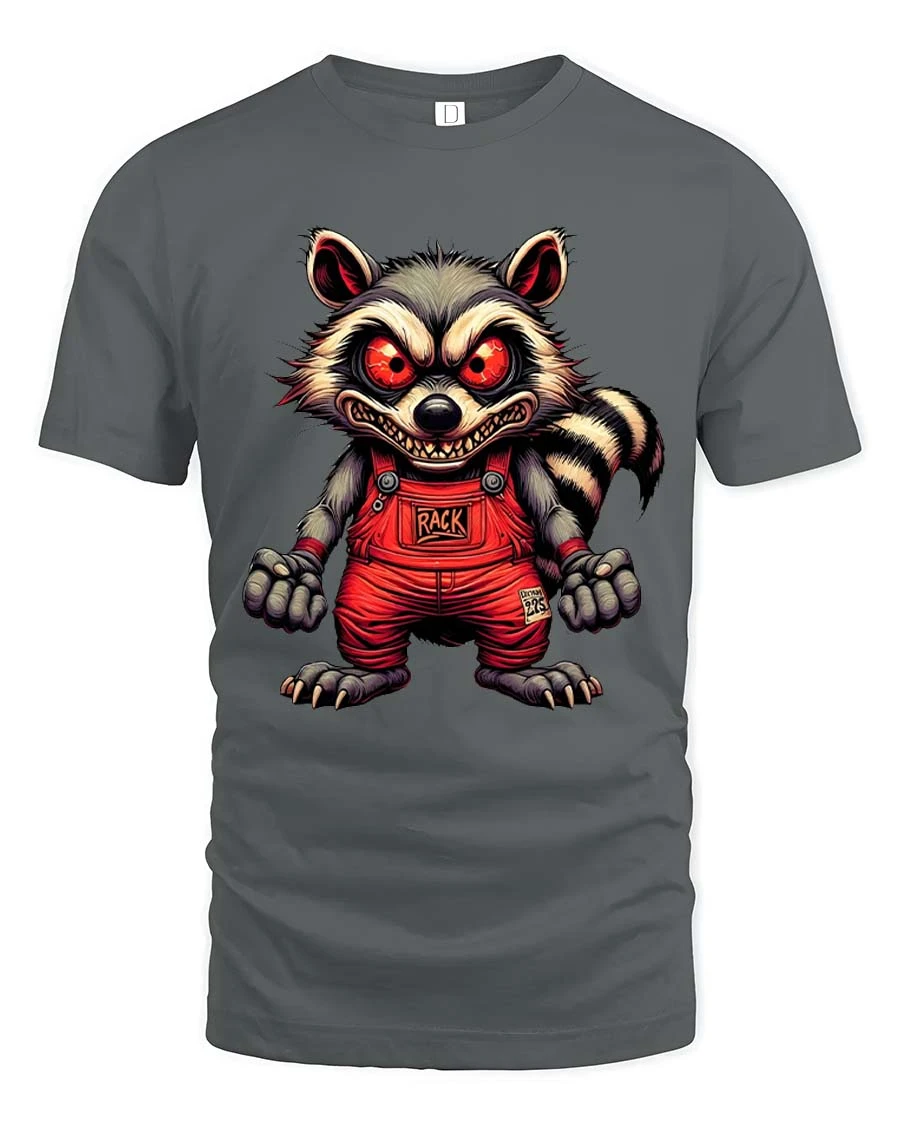 Creepy Evil Raccoon Graphic T Shirt Red Eyes Horror Art Tee features a sinister raccoon with glowing red eyes and a menacing grin that instantly grabs attention.