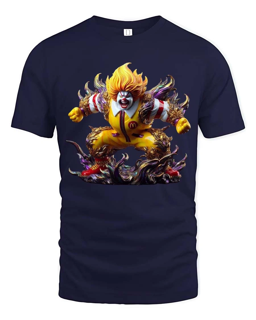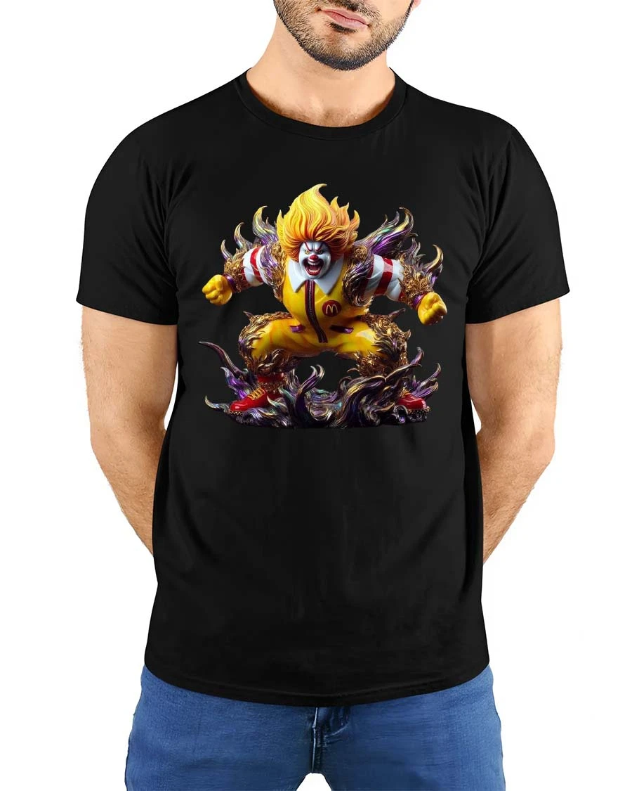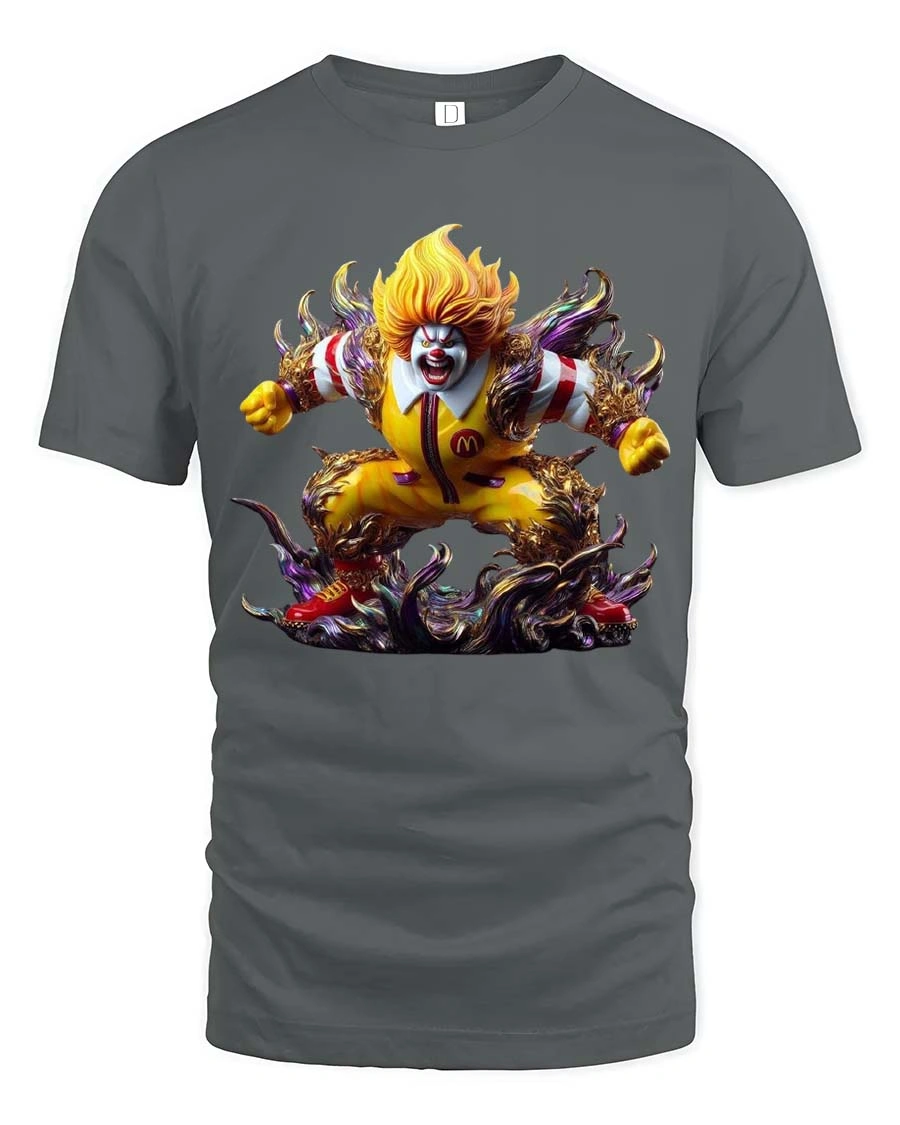 Creepy Fast Food Clown Monster Graphic T Shirt Horror Clown Tee features a bold and intense design that transforms a familiar clown into a terrifying and powerful monster.