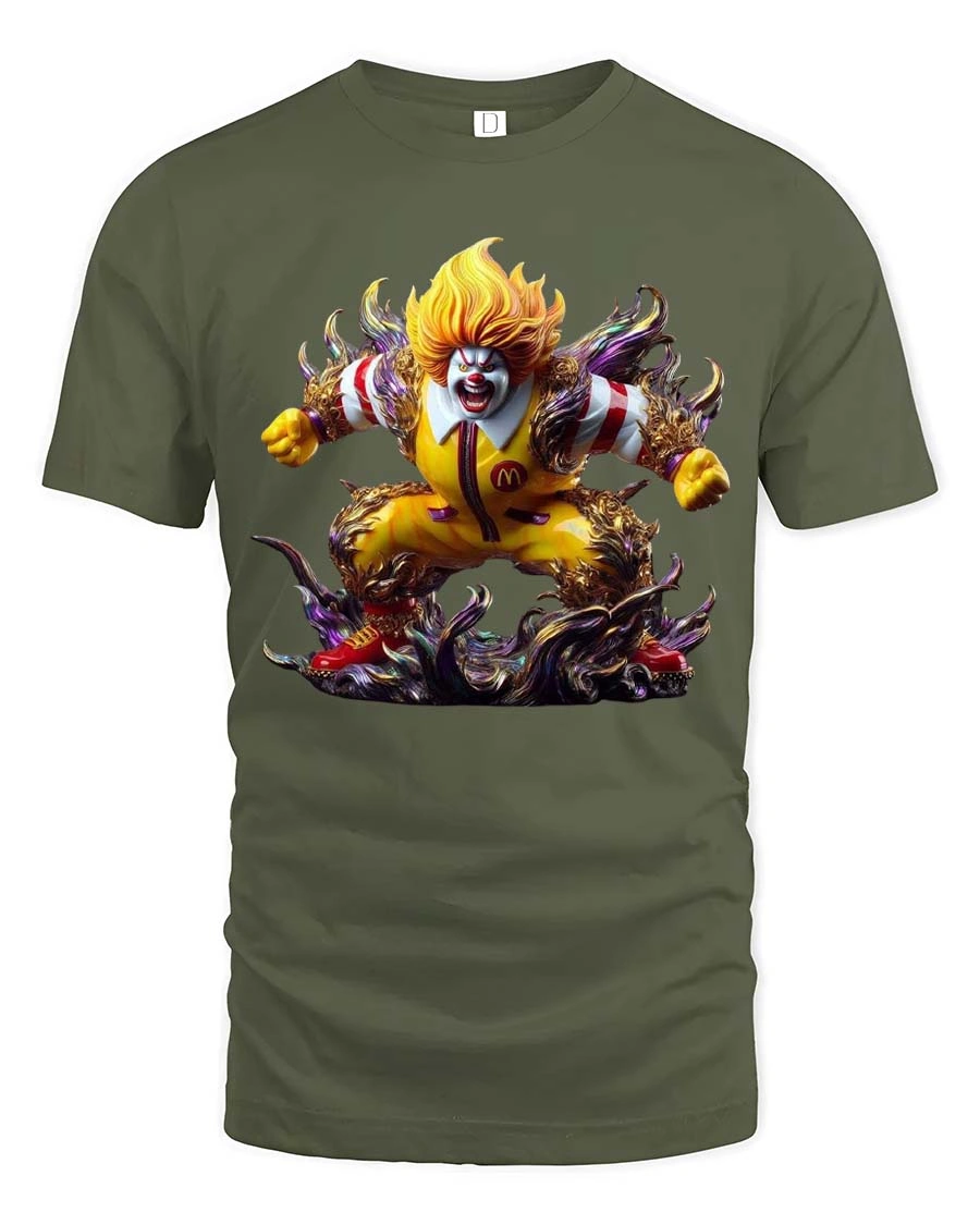 Creepy Fast Food Clown Monster Graphic T Shirt Horror Clown Tee - military green t-shirt on white background