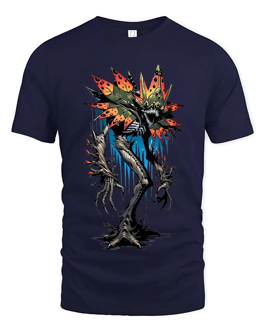 Creepy Flower Monster T Shirt Dark Horror Plant Graphic - navy t-shirt on white background