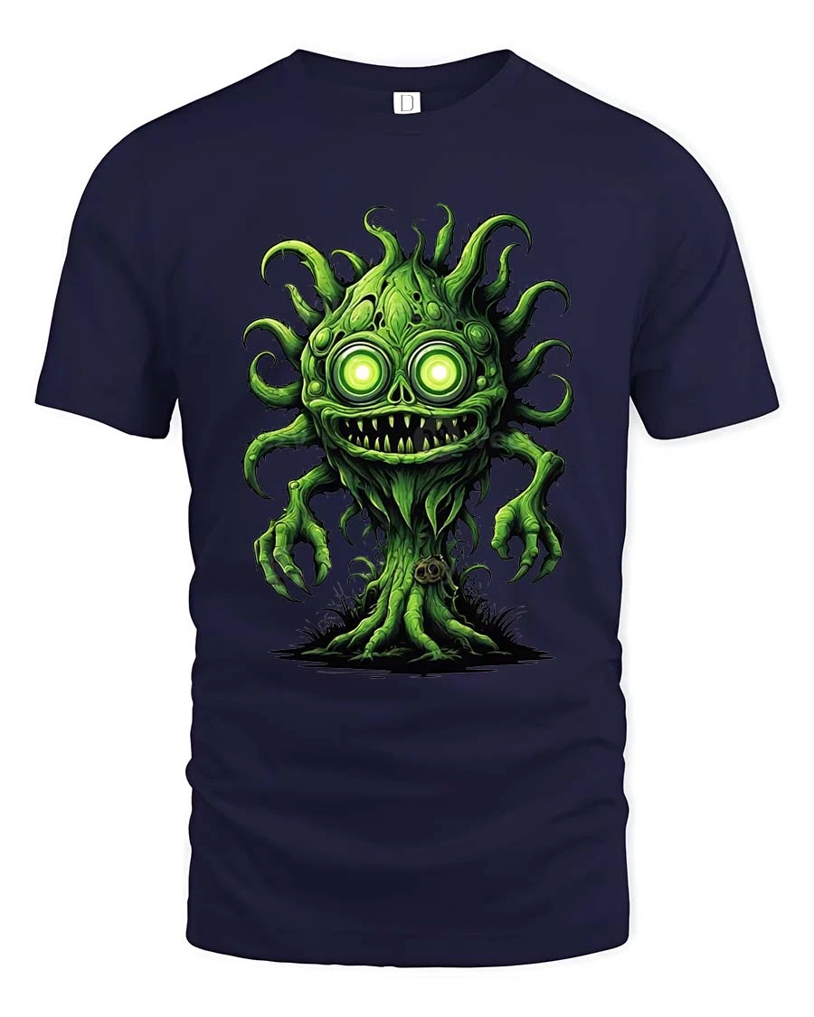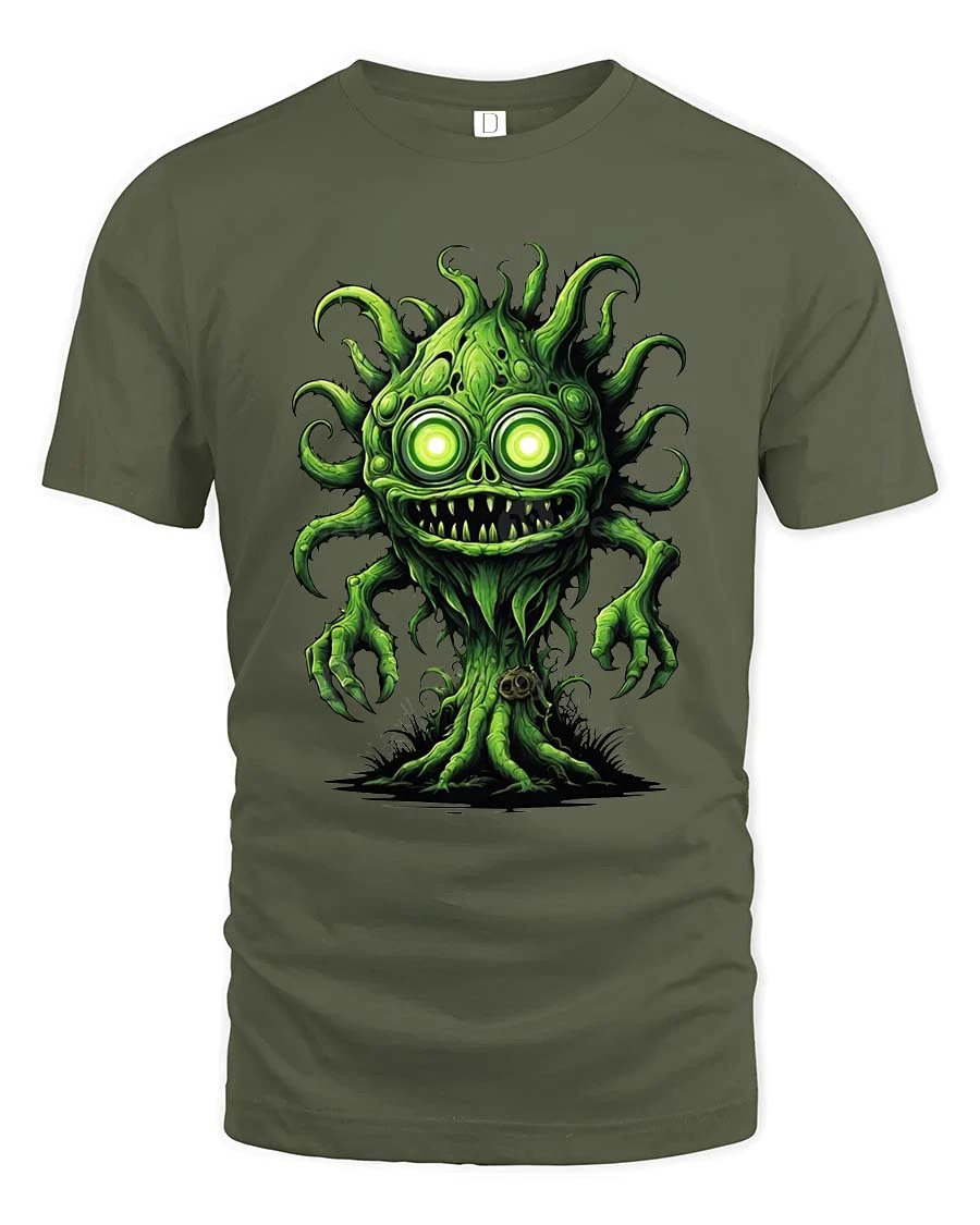 Creepy Green Monster Tree Cartoon Horror Graphic T Shirt features a wild fantasy creature that blends spooky horror style with playful cartoon design.