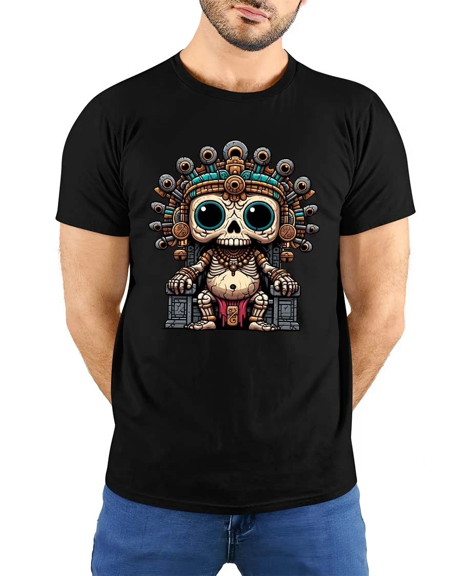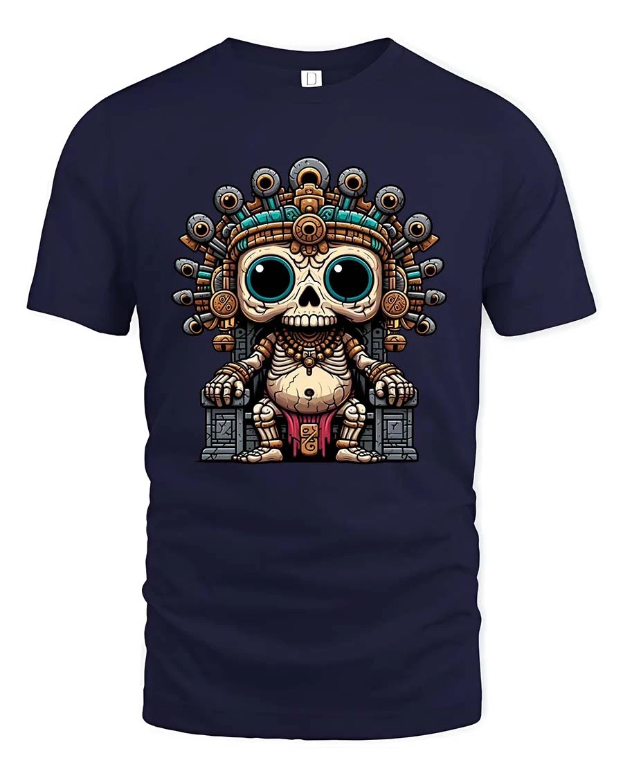 The Cute Ancient Skull King Cartoon Aztec Style Graphic T Shirt stands out with rich ornamental details and a charming cartoon style illustration.