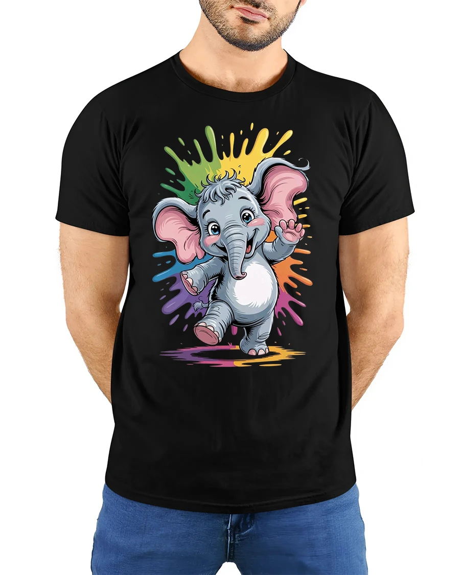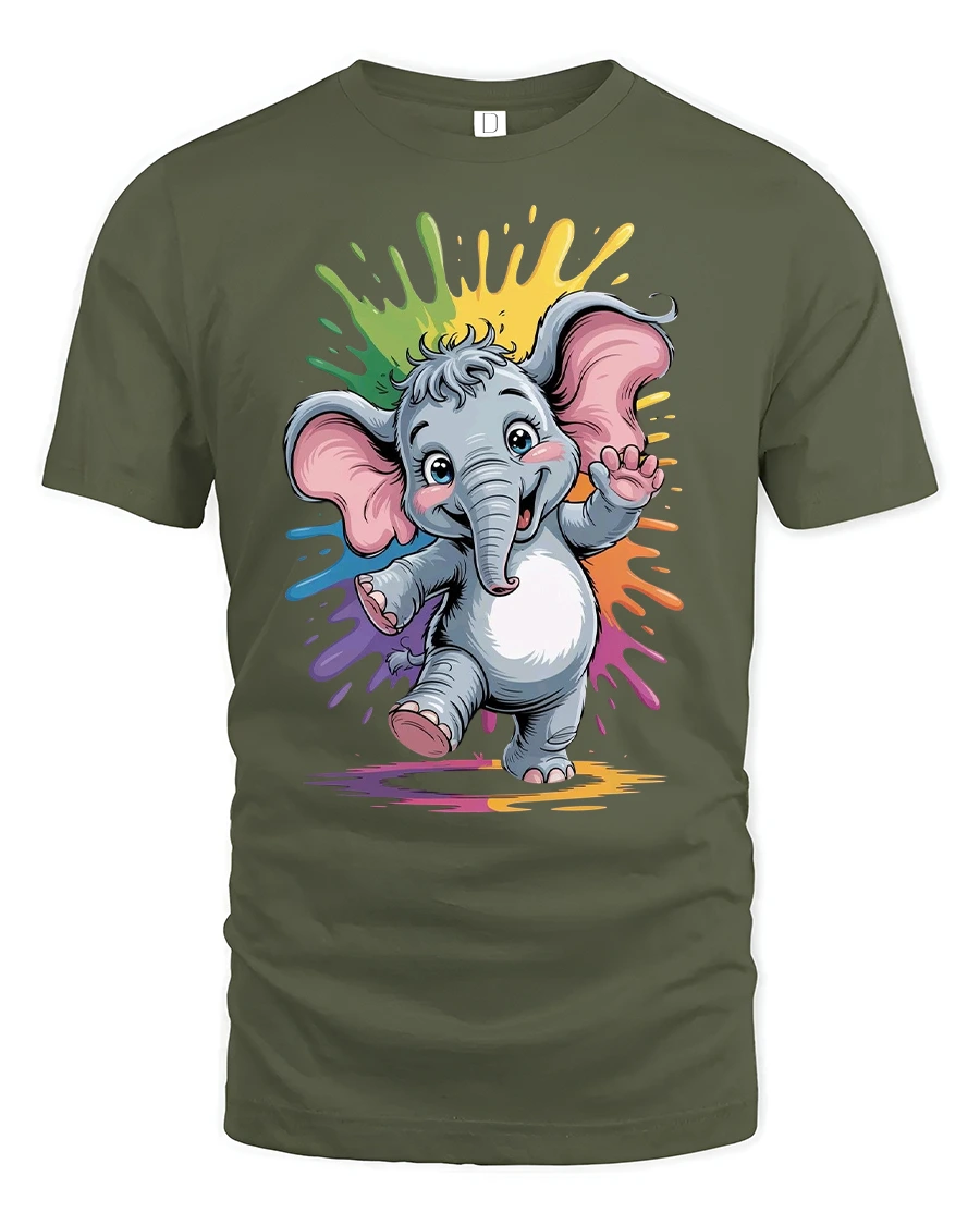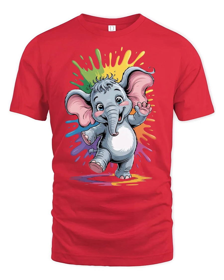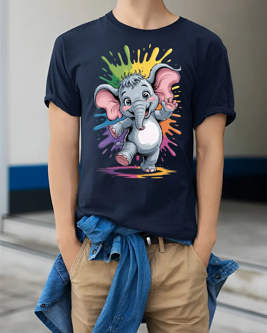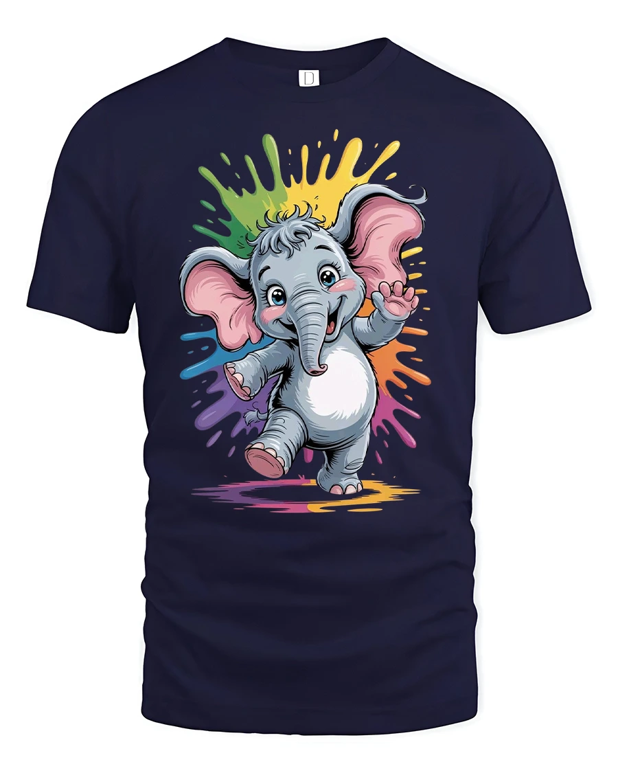 Cute Baby Elephant Rainbow Splash Graphic Tee brings playful charm and bright color to any outfit. Featuring a happy baby elephant dancing in front of a vibrant rainbow splash background, this tshirt is packed with cheerful energy and eye-catching detail. The adorable cartoon style makes it perfect for animal lovers, kids, or anyone who enjoys fun and heartwarming designs.