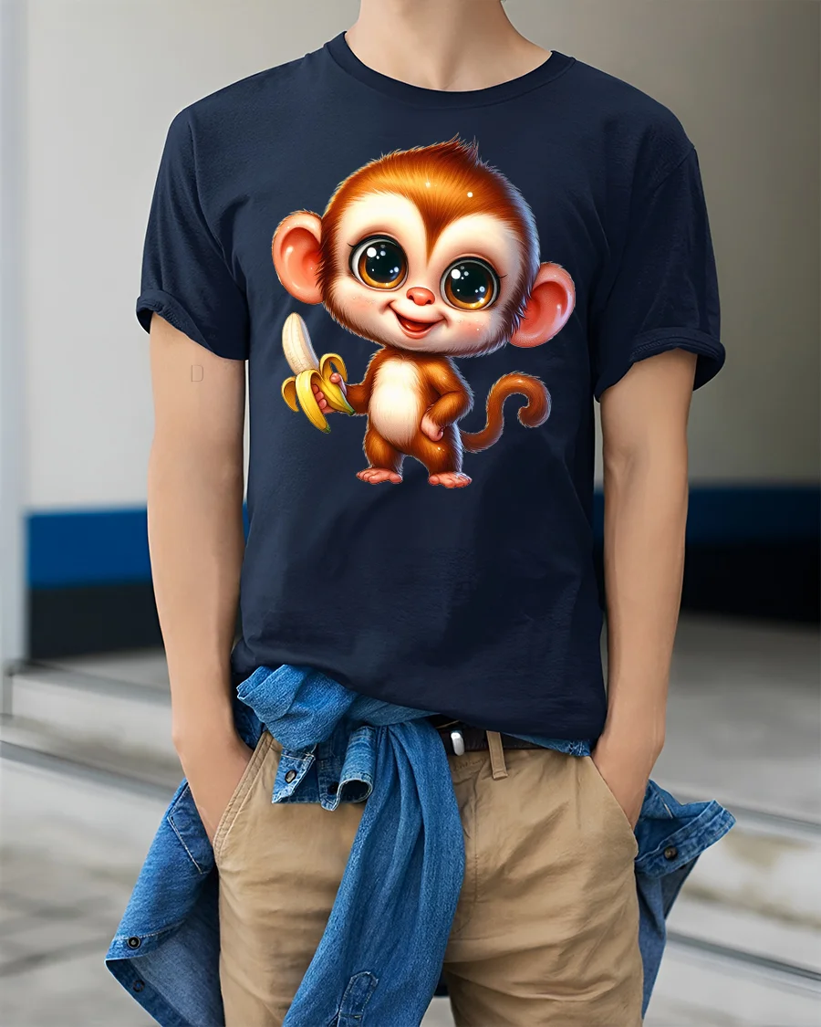 Wearing the Cute Banana Monkey Tee with Big Eyes Adorable Cartoon Art adds warmth and cuteness to your everyday look. Whether you enjoy animal characters, love cheerful cartoon designs, or simply want a tee that spreads joy, this design delivers all of that and more. Its friendly vibe makes it perfect for casual outings, relaxed days at home, or gifting to someone who adores charming animal art.