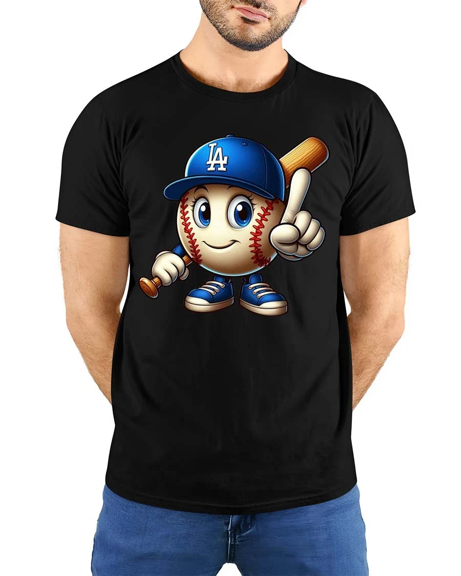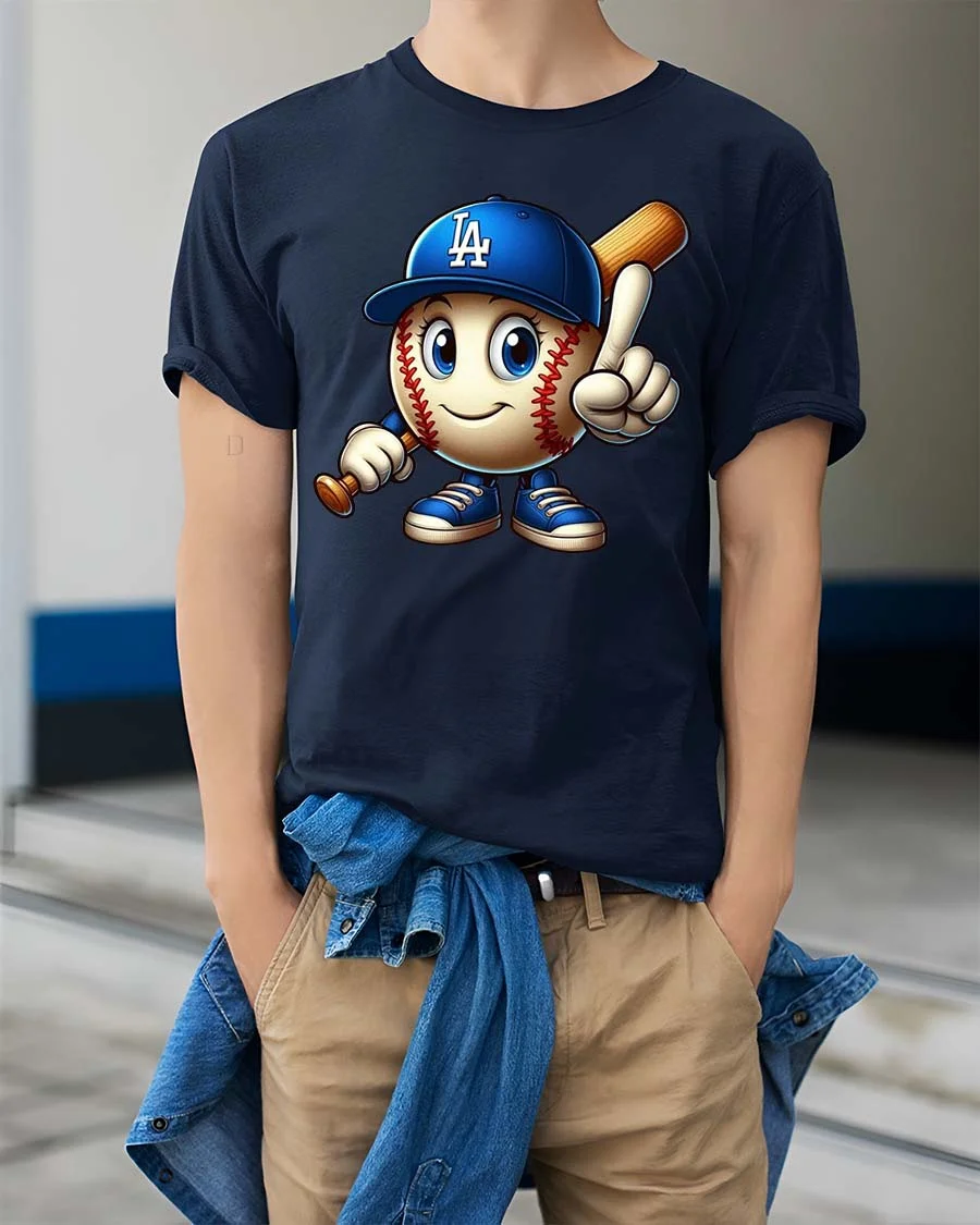 Cute Baseball Cartoon Player LA Style Graphic tshirt brings a fun and sporty vibe to everyday fashion.