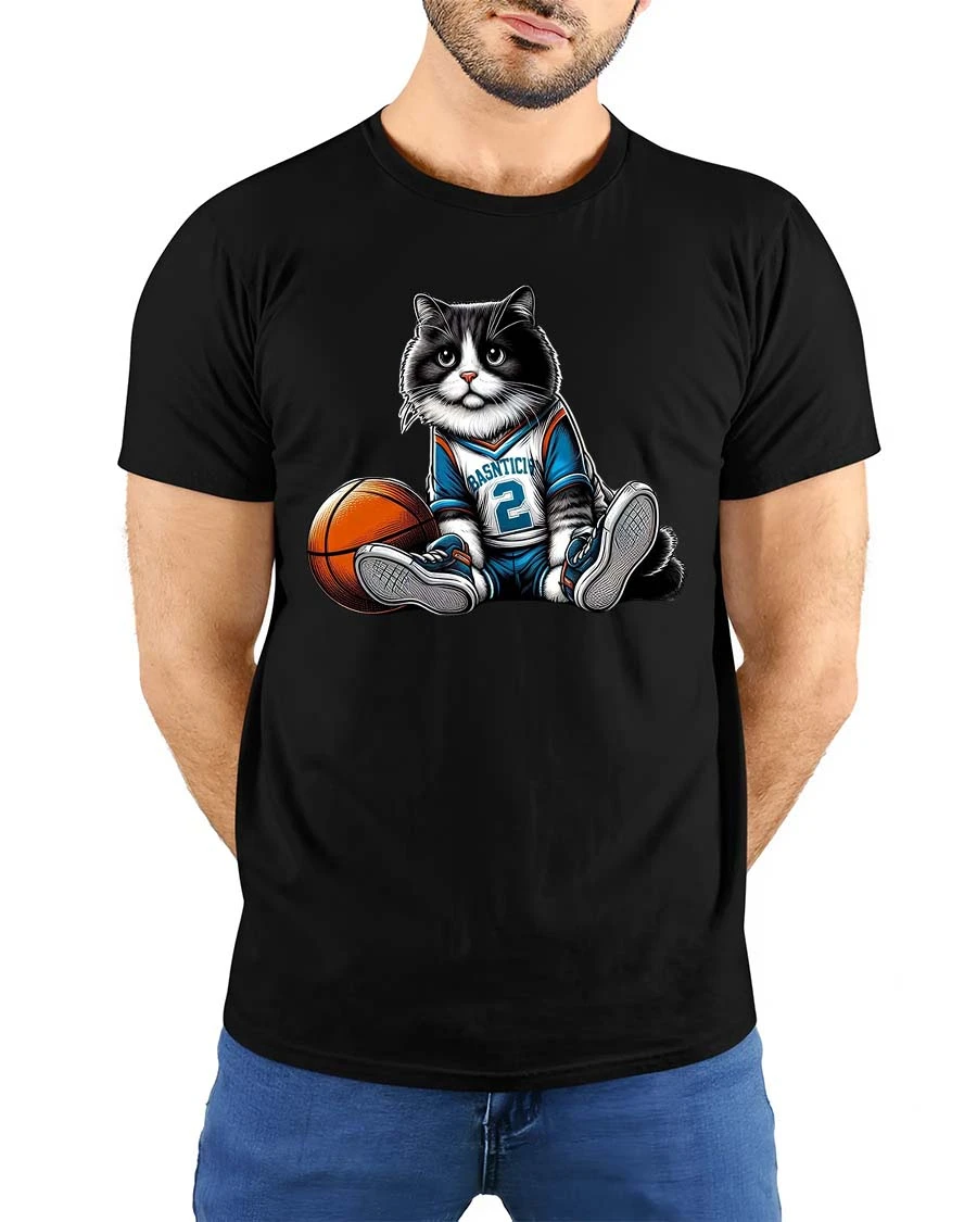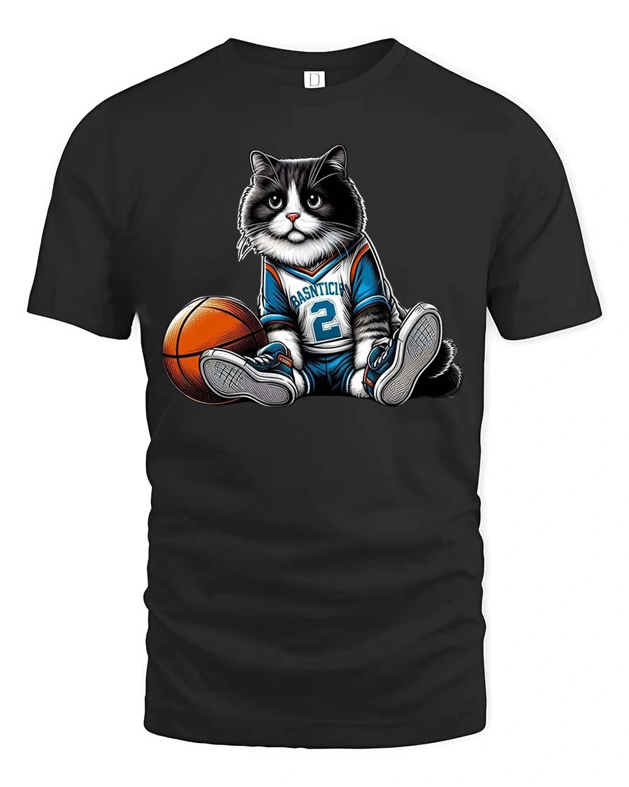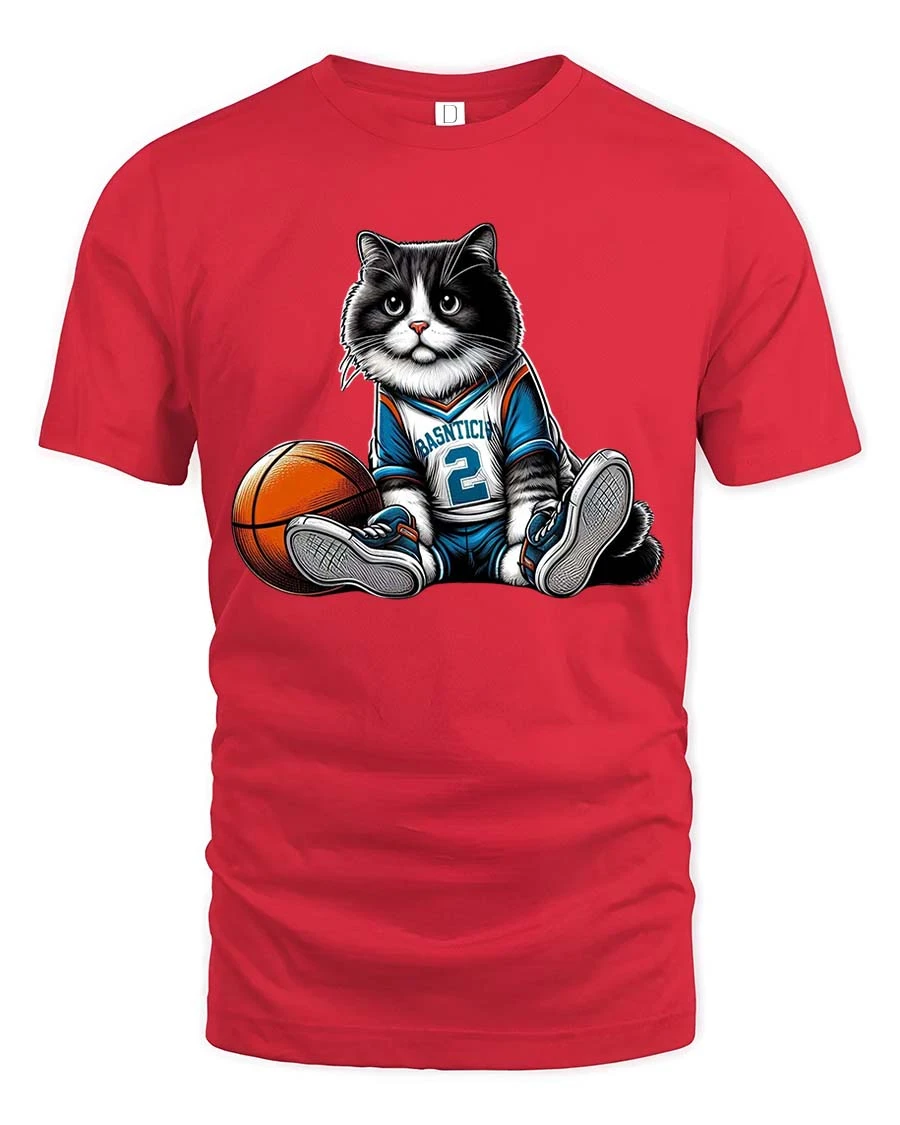 Cute Basketball Cat Graphic T Shirt Funny Sport Cat Tee combines adorable charm with sporty style in a fun and eye catching design.