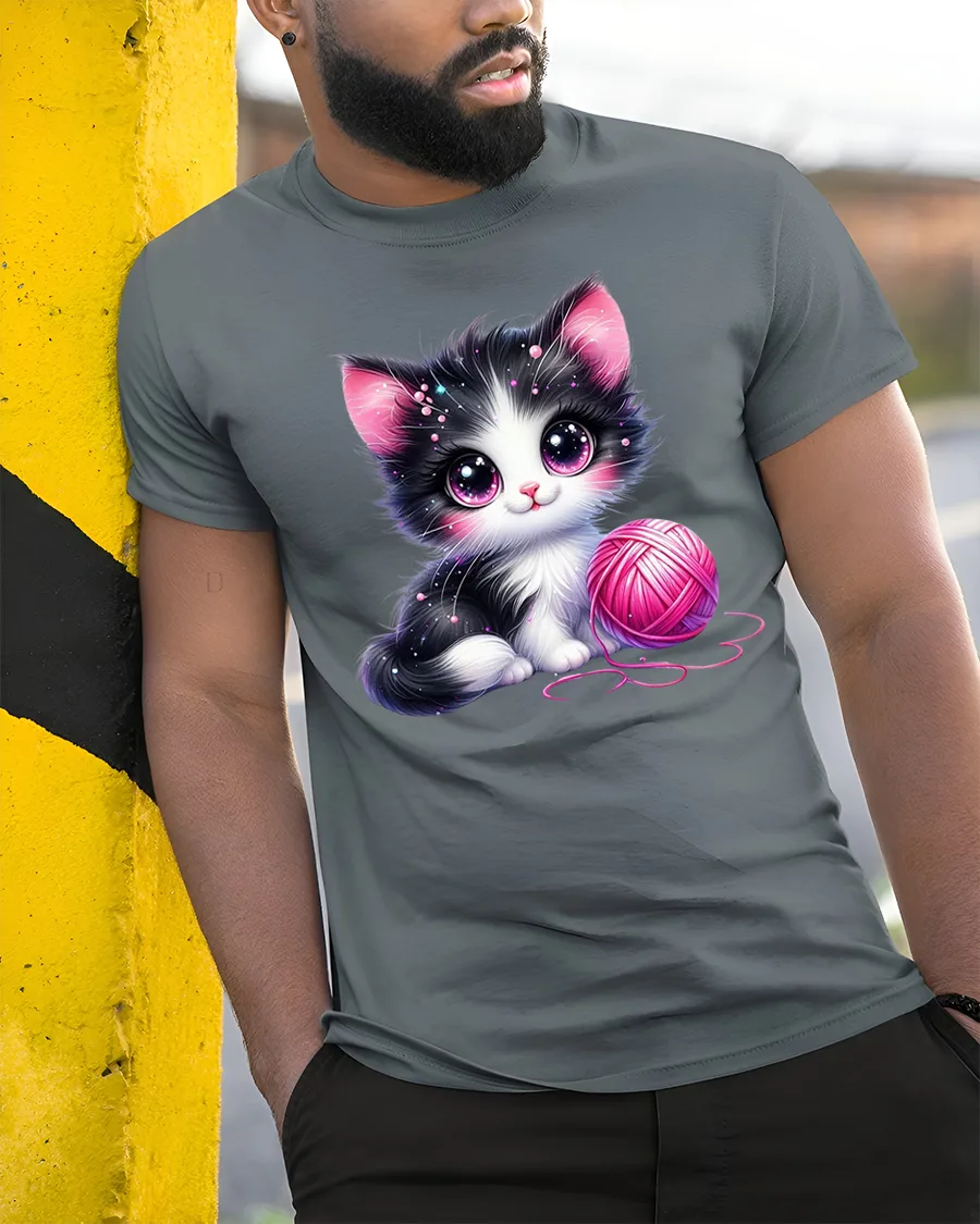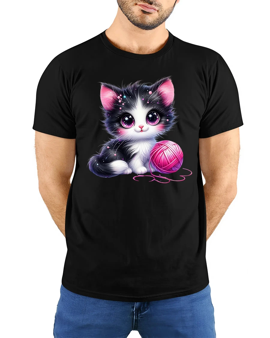 Cute Black and White Kitten with Pink Yarn Art T-Shirt is the ultimate tee for anyone who loves cats, cuteness, and cozy vibes.