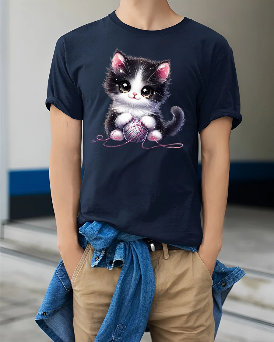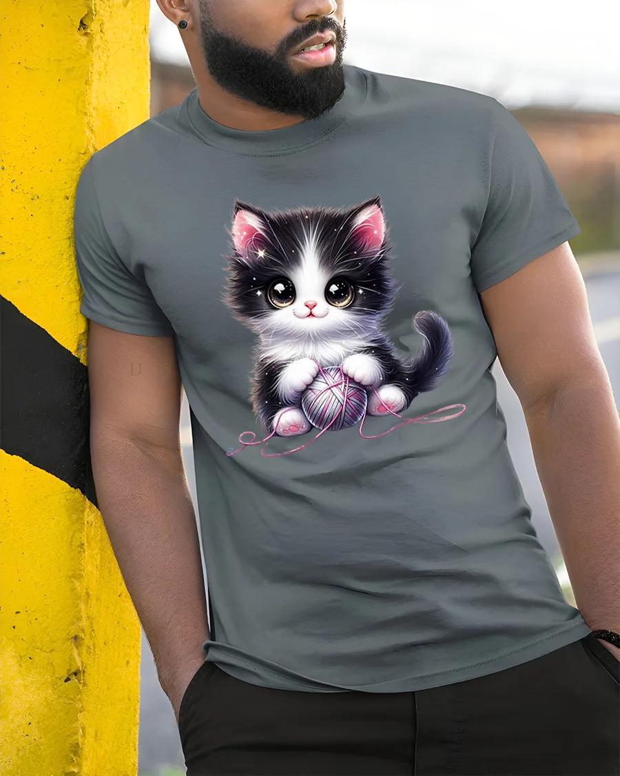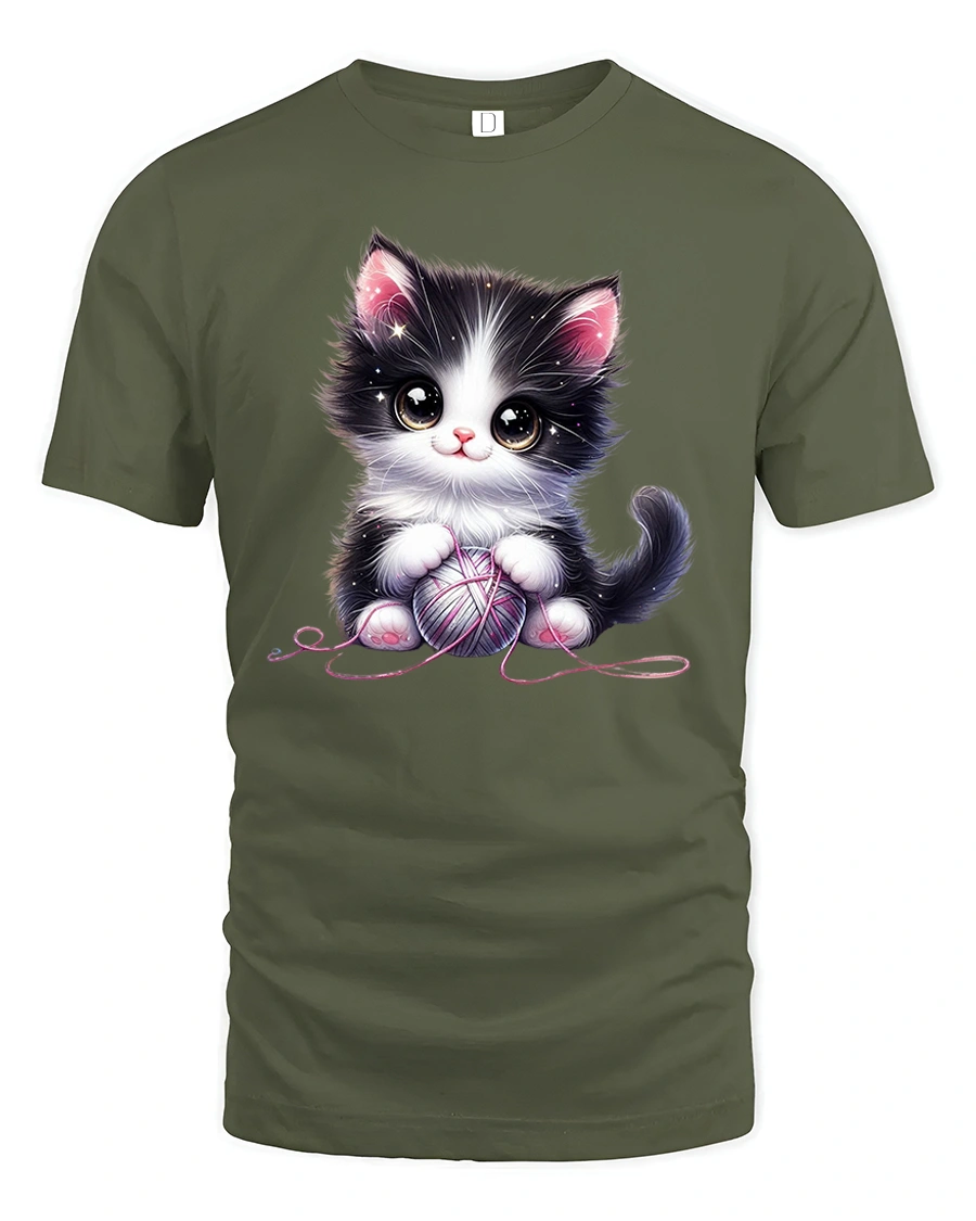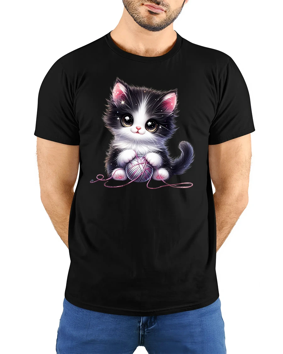 Cute Black and White Kitten with Yarn Ball Art T-Shirt is the perfect mix of sweetness and comfort for cat lovers everywhere.