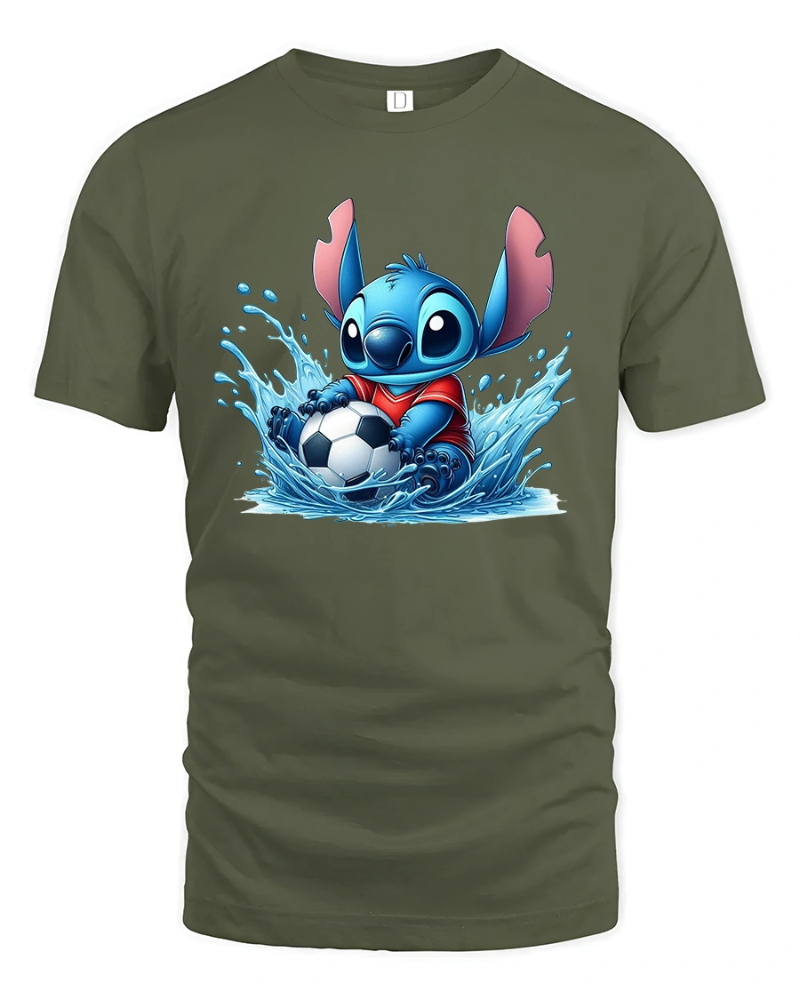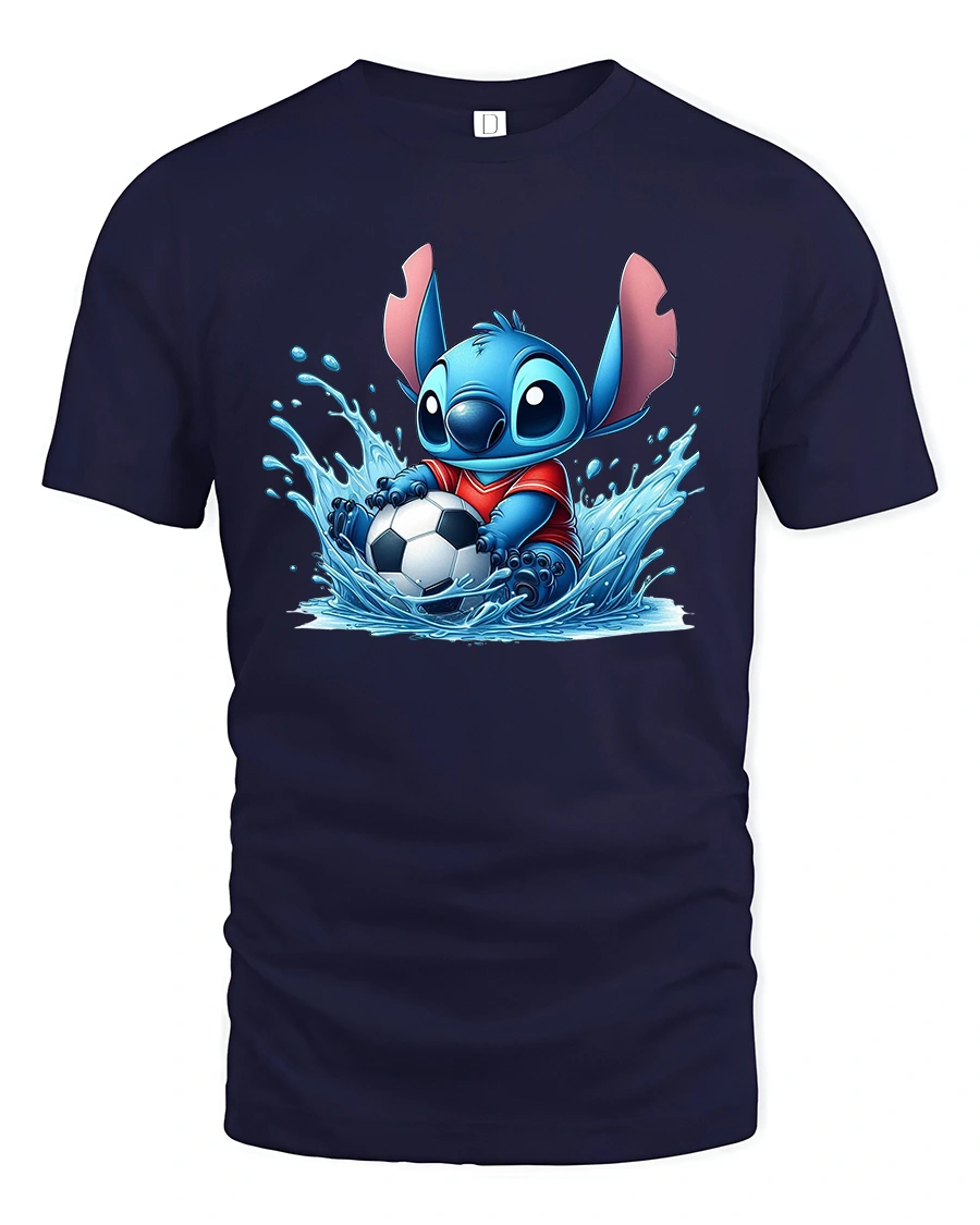 Featuring an adorable blue alien splashing in water while holding a soccer ball, this tee perfectly blends sporty spirit with a cute, animated design.
