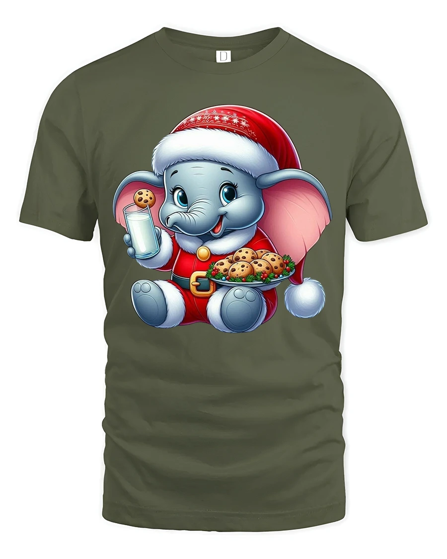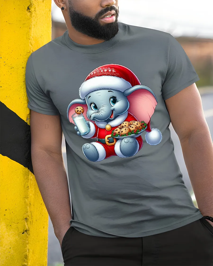Celebrate the holidays with a tee that blends cuteness, comfort and Christmas spirit in one charming design. Bring joy and warmth to the season with an irresistibly sweet elephant enjoying milk and cookies.
