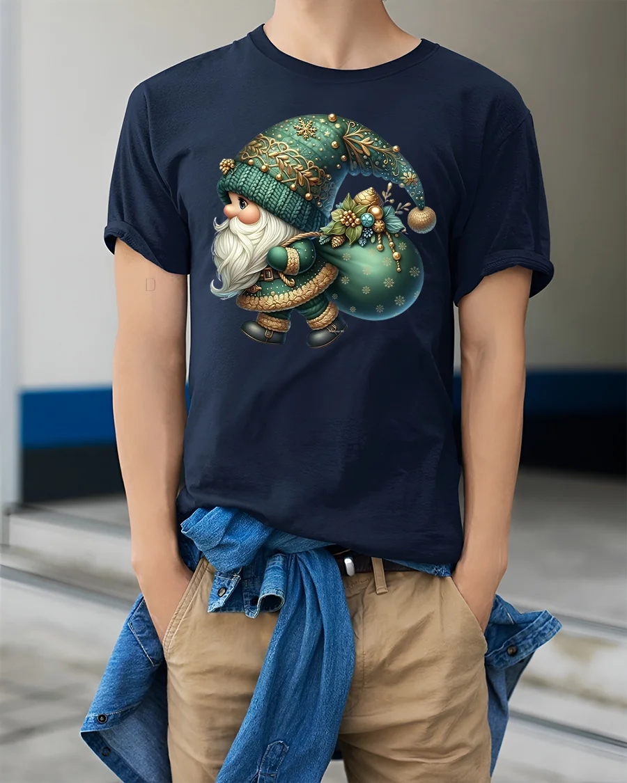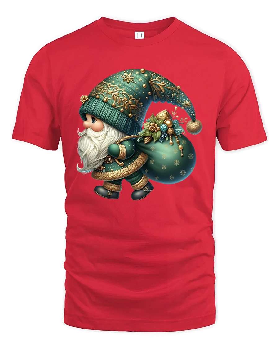 Perfect for anyone who loves gnome-themed art, festive fashion, or cozy holiday designs, this tee brings a playful yet refined touch to seasonal style.