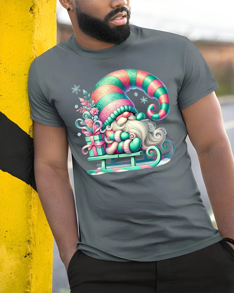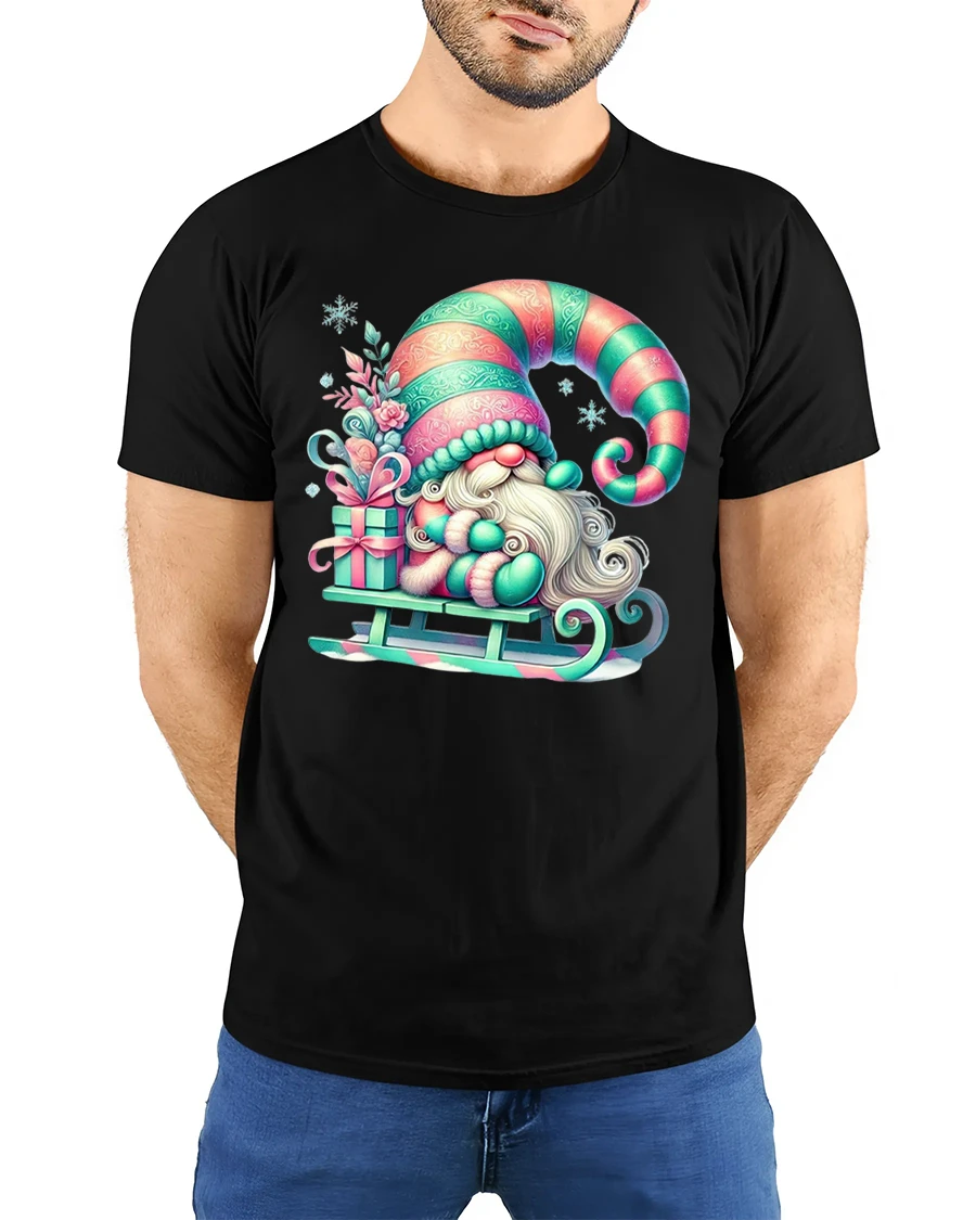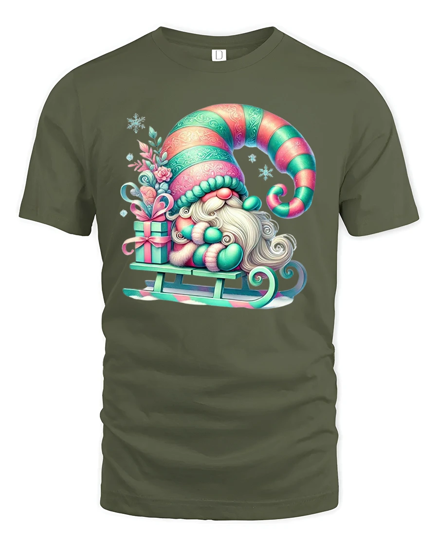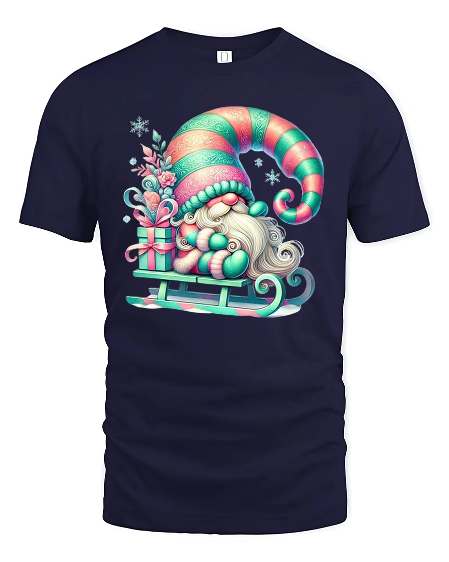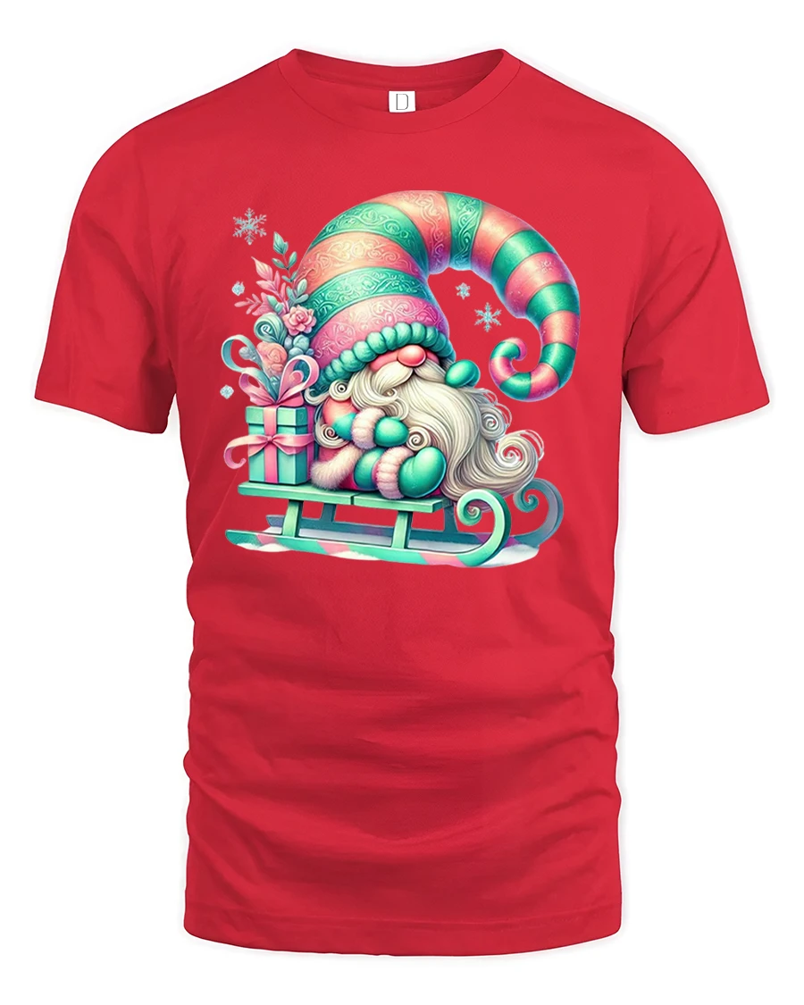 This Cute Christmas Gnome Sledding Graphic Tee Festive Holiday T-Shirt brings cheerful winter magic to your holiday wardrobe. Featuring an adorable gnome with a long striped hat, riding happily on a colorful sled with beautifully wrapped gifts, this design captures the playful and heartwarming spirit of Christmas. Soft pastel tones, swirling details, and gentle snowflakes make the artwork feel cozy, charming, and full of festive joy.