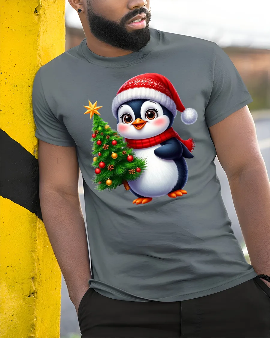 Cute Christmas Penguin Tee With Cozy Holiday Cheer brings instant joy and warmth to your holiday wardrobe. The charming penguin illustration wearing a Santa hat and scarf creates a playful and heartwarming Christmas atmosphere. Paired with a decorated Christmas tree this design captures the magic of the season in a fun and friendly way.