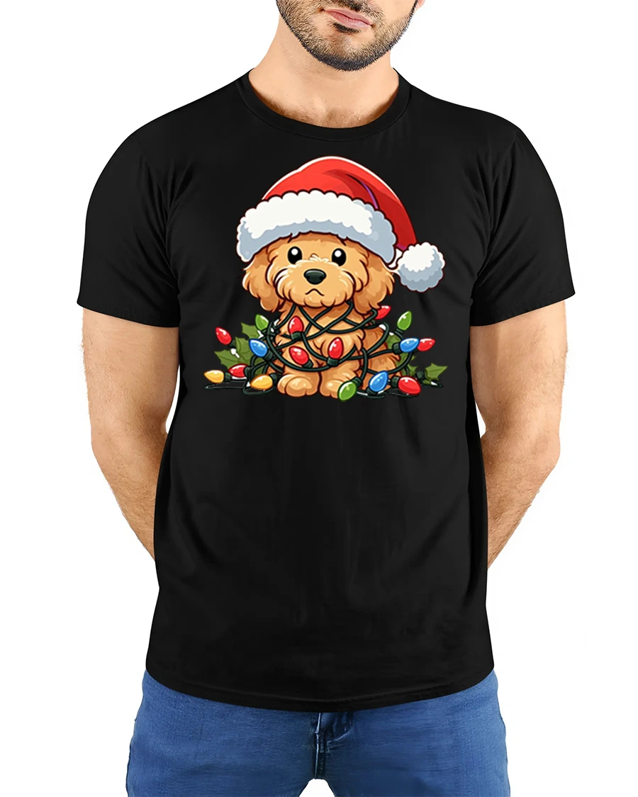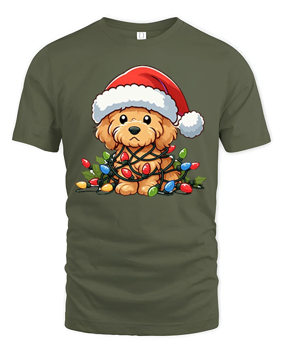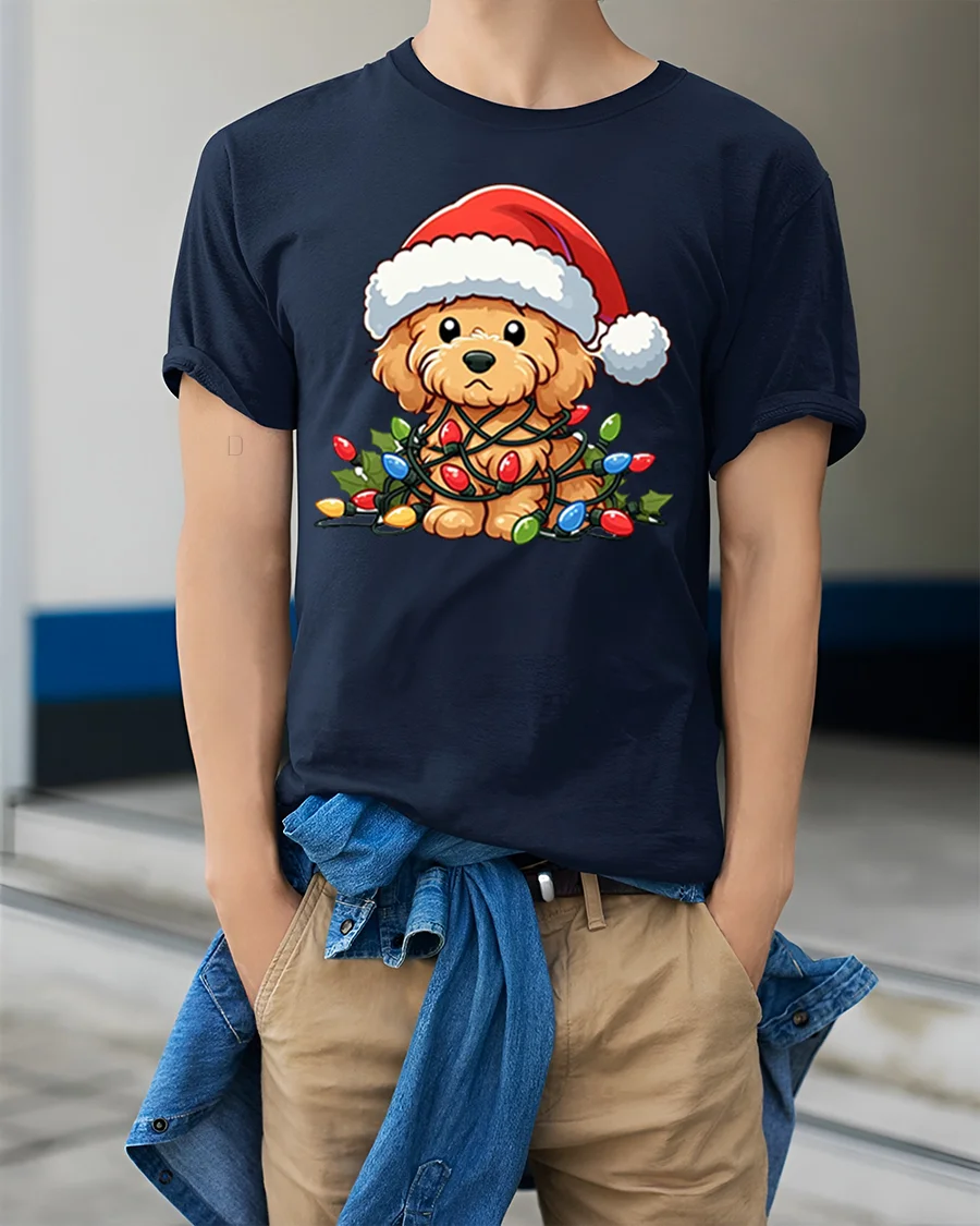 Perfect for Christmas parties, family gatherings, holiday photos, or cozy winter outings, this tee delivers comfort and cuteness in every wear. The bright holiday lights and sweet puppy expression make it a fun conversation starter and an instant favorite for anyone who loves dogs or festive humor. Whether paired with jeans, leggings, or layered under a cozy jacket, it adds the perfect holiday touch.