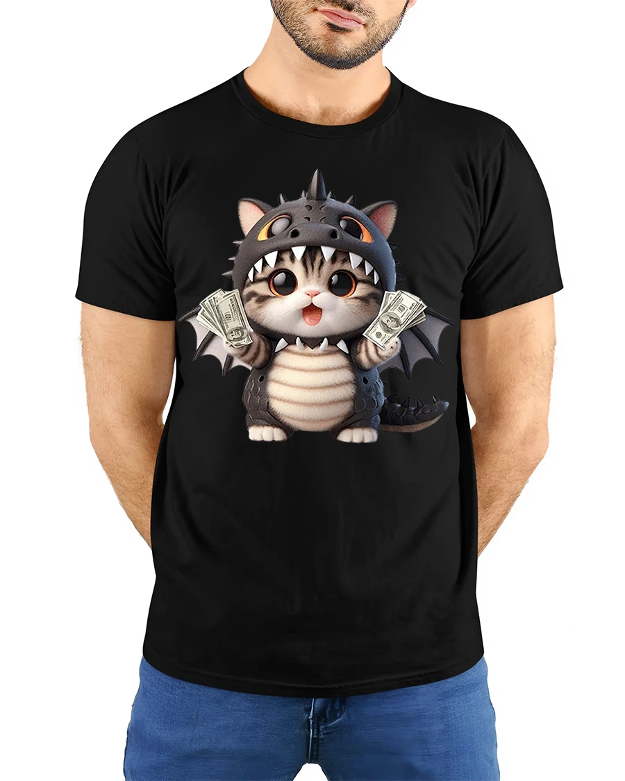 Show off your playful side with the Cute Dragon Cat With Cash Graphic T Shirt Funny Tee. This charming design features an adorable kitten dressed in a dragon costume while holding stacks of cash, blending fantasy and humor into one irresistible graphic. The detailed artwork and expressive eyes create a fun and eye catching look that instantly grabs attention and sparks conversation.