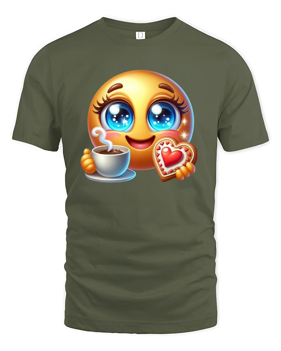 Cute Emoji Coffee Time Tee – Funny Heart Cookie T-Shirt is a delightful way to start your day with a smile. Featuring a cheerful emoji holding a warm cup of coffee and a heart-shaped cookie, this tee captures the joy of cozy mornings and good vibes. Perfect for coffee lovers, emoji fans, and anyone who believes happiness starts with a good brew.