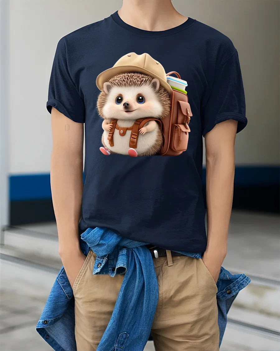 Bring a touch of charm and adventure to your wardrobe with the Cute Explorer Hedgehog Backpack Adventure T-Shirt. This adorable tee features a happy little hedgehog ready for a journey, complete with a backpack and explorer hat. Perfect for animal lovers, outdoor enthusiasts, and anyone who enjoys playful graphic designs, this t-shirt combines fun style with everyday comfort.